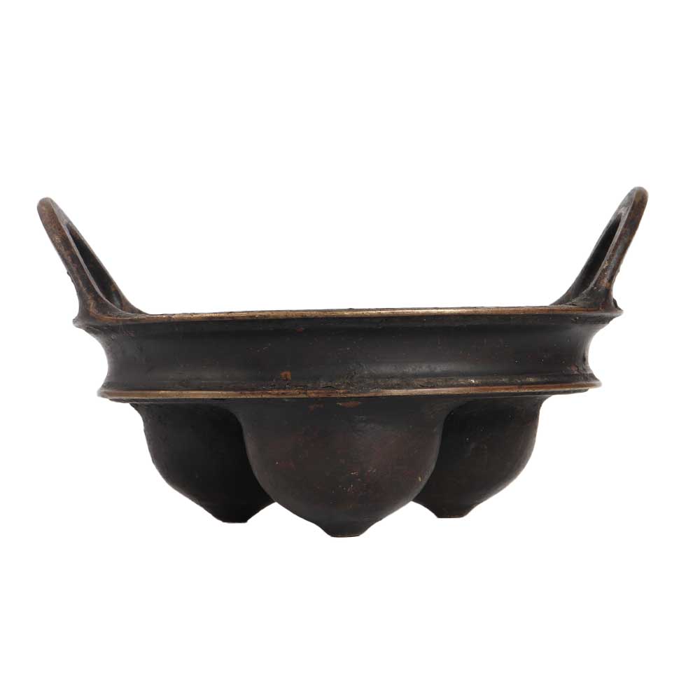 A cooking pot in elegant black finish made of the best brass, which will leave a long-lasting impression in the interior. In the past, this cooking pot was used to cook food in South India. Cooking acid free food in the brass cooking pots is good for health. Since it is an old and used item, we recommend using this pot for decoration purposes. It has two integrated handles to get a better grip. It was handmade by local Indian artisans from South India using traditional methods. Decorate your home, office, restaurant, hotel, cafe or store with this vintage cooking pot. Gift it to your loved ones on special, festive and auspicious occasions.