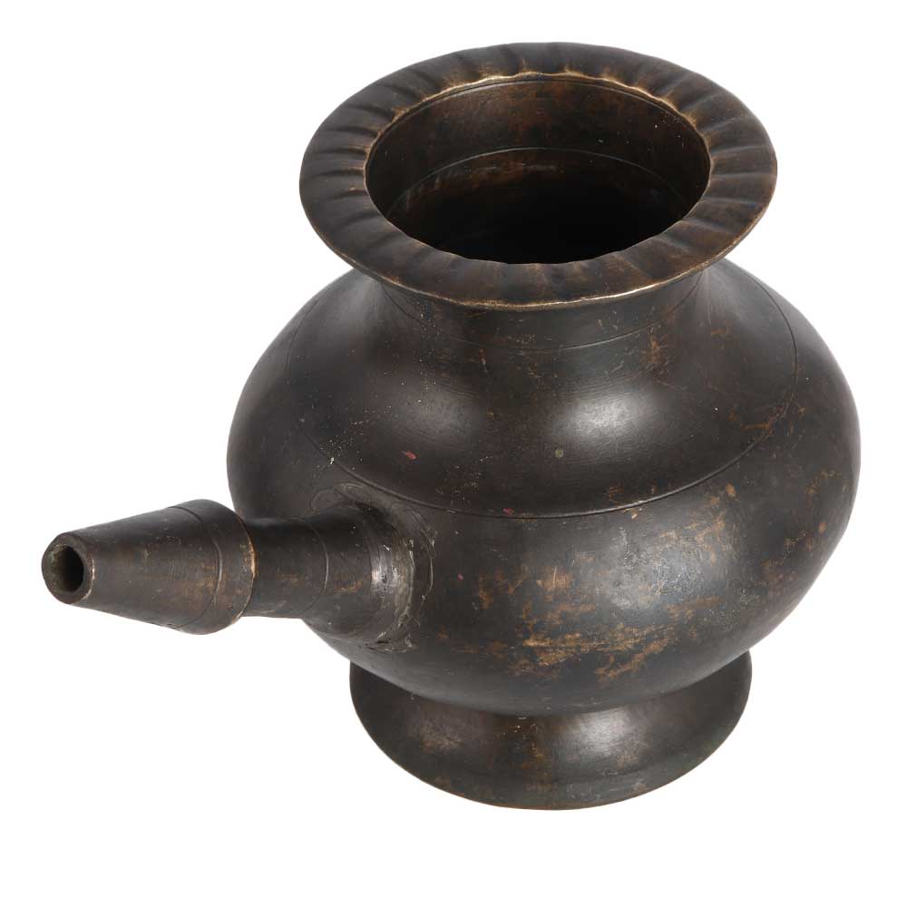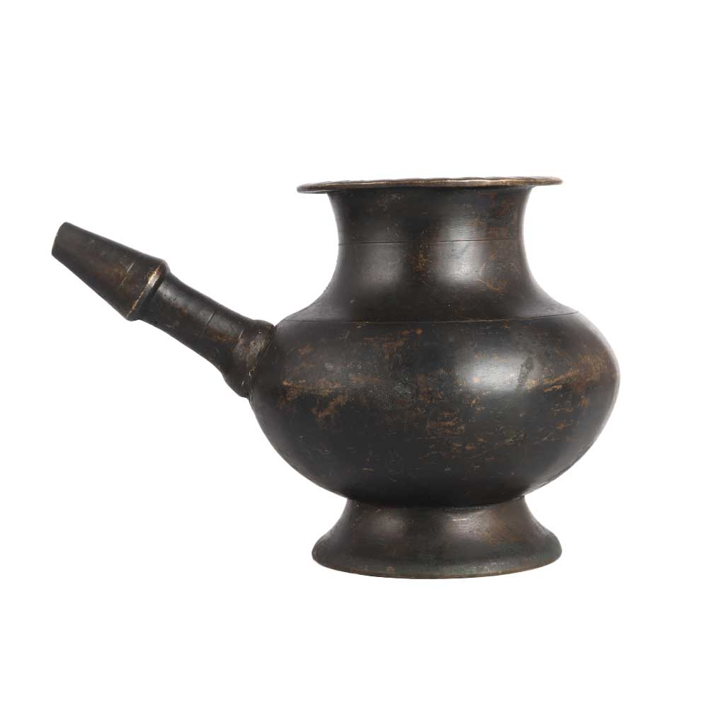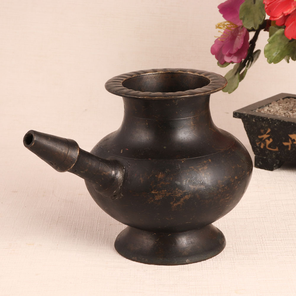 Buy a brass water pot with a spout and a black finish which is a beautiful and functional addition to any home. Made of high-quality brass in Himalayan art, this pot is durable and sturdy. The spout allows for easy pouring of water, making it perfect for use in the kitchen or for serving guests. The black finish gives it a unique and vintage look that will complement any decor style. It is not only functional but also decorative, and can be used as a centerpiece or as part of a display. With its elegant design and practical features, this brass water pot is a must-have for any home and office. An ideal gift for all special and festive occasion to your loved ones.