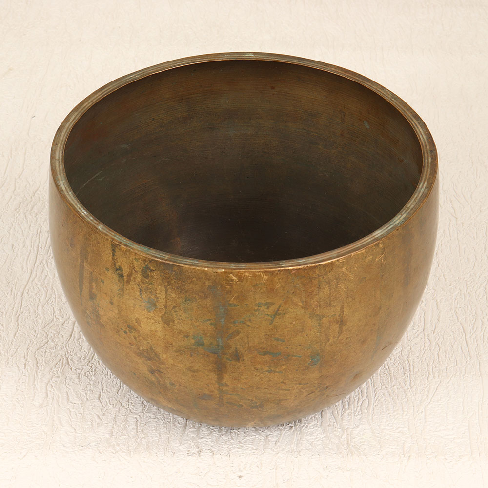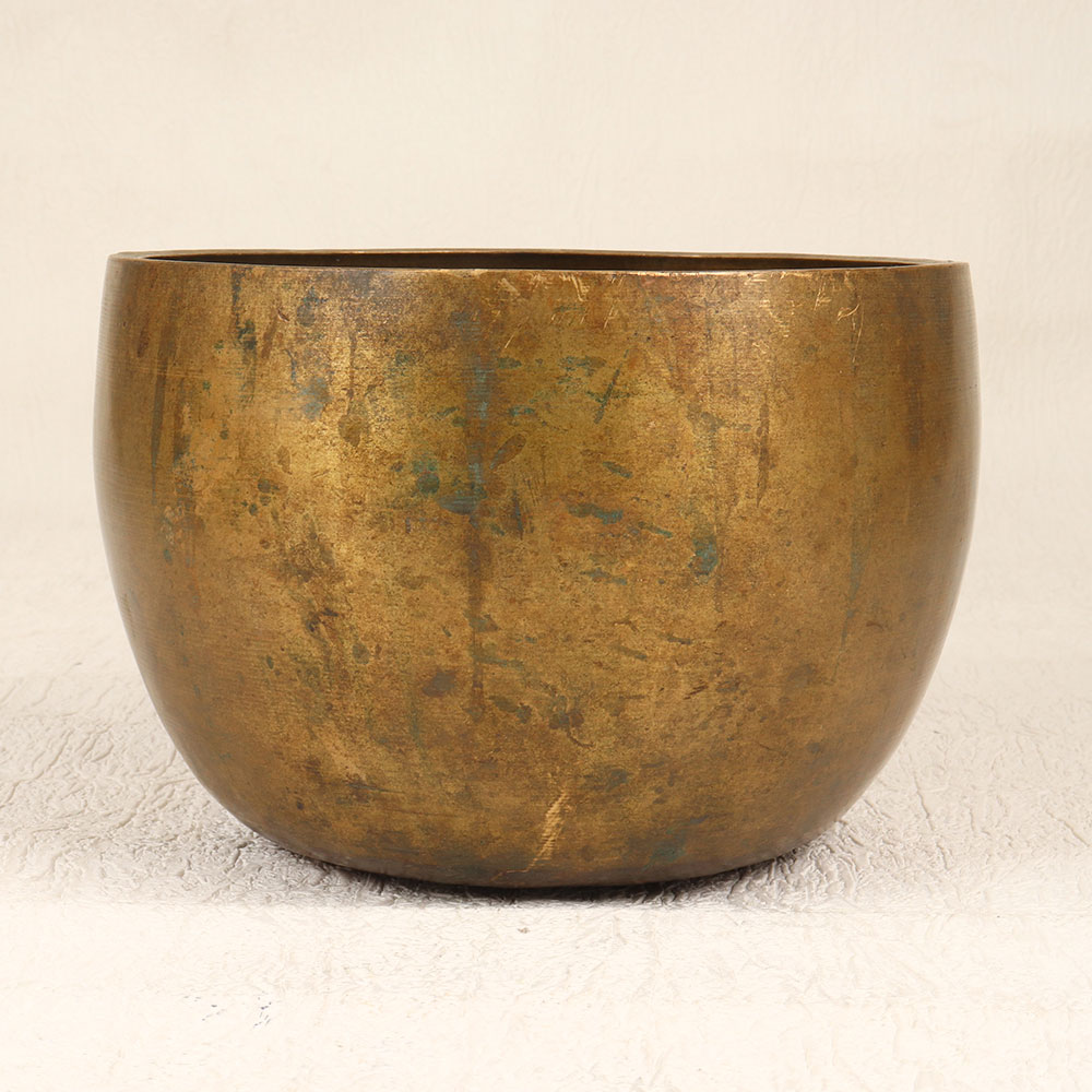 Escape the chaos of everyday life with the enchanting tones of this vintage Tibetan singing bowl. Handcrafted from bell metal by skilled artisans, this singing bowl produces deep vibrations designed to calm your mind when played with a mallet. Allow your senses to be enveloped by the soothing hum of this singing bowl. Designed for meditation practices, the pleasant chimes help quiet racing thoughts, relieve stress, and promote mindfulness. The immersive sound experience transports you to a place of inner stillness and tranquility. Give the gift of serenity with this beautifully crafted vintage singing bowl. Whether creating a relaxing ambiance or using it in your daily ritual, the tones of this Tibetan bowl will help you find your zen.