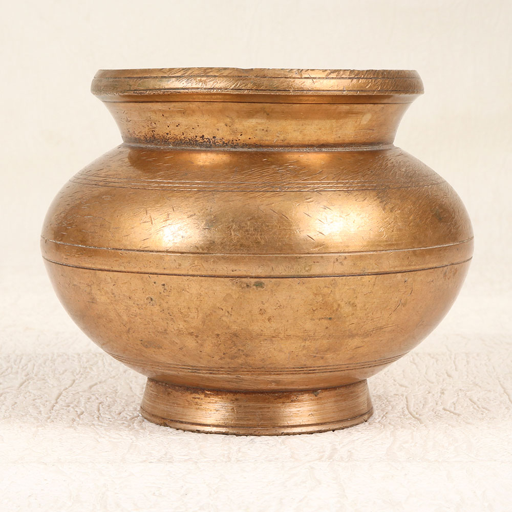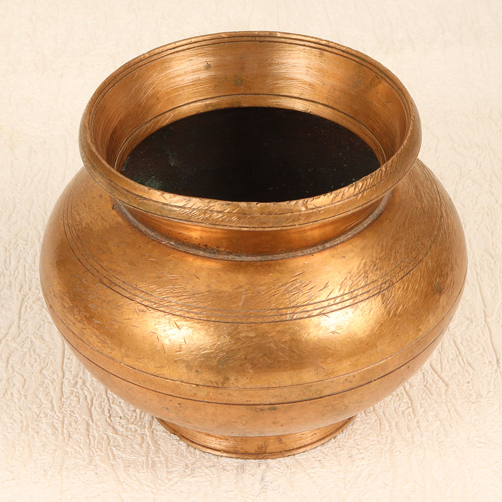 Add a touch of sacred charm to your home with this vintage brass holy water pot. Handcrafted in Gujarat, India, this elegant vessel invokes timeless spirituality. With its modest elegance, this brass pot makes displaying holy water a breeze. The vintage brass gives a wonderful aged patina while the simple shape provides an understated beauty. Whether placed beside your home altar or as part of your spiritual decor, this pot lends a serene aura. Offering the perfect way to honor your faith, this brass holy water pot will provide a special place to dip your fingers and make the sign of the cross. A thoughtful housewarming or holiday gift for the spiritual people in your life.
