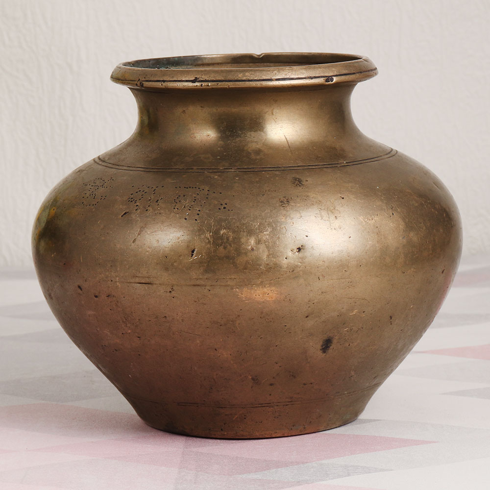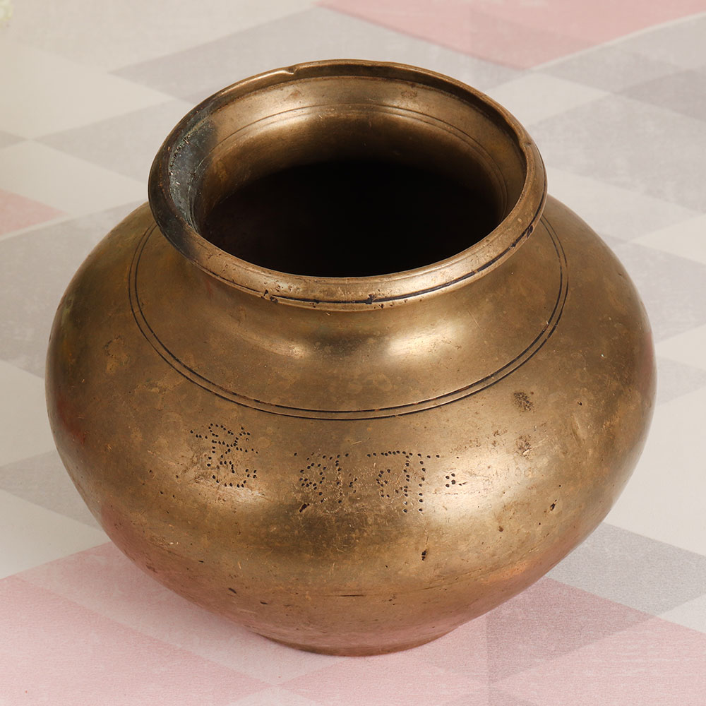 Buy a vintage brass holy water pot online which has an antique brown finish and get a hassle free delivery at your doorstep. Handcrafted by skilled Indian artisans well-versed in South Indian artistry, this piece is a testament to their expertise and dedication. Crafted from high-quality brass, it exudes an aura of timeless beauty and authenticity. This versatile vessel can grace your home, office, restaurant, hotel, cafe, or shop with its elegant presence. Its dual functionality allows it to serve as both an indoor flower pot and a sacred container for holy water during havan, rituals, and other auspicious occasions. Placing this artefact in the north direction of your room is believed to infuse your space with positive energy, making it a symbolic addition to your décor. It's also a valuable item for vintage collectors and a thoughtful gift for your family, friends or relatives on special, festive, or auspicious occasions. Embrace the rich heritage of Indian craftsmanship with this brass holy water pot, where tradition meets contemporary aesthetics.