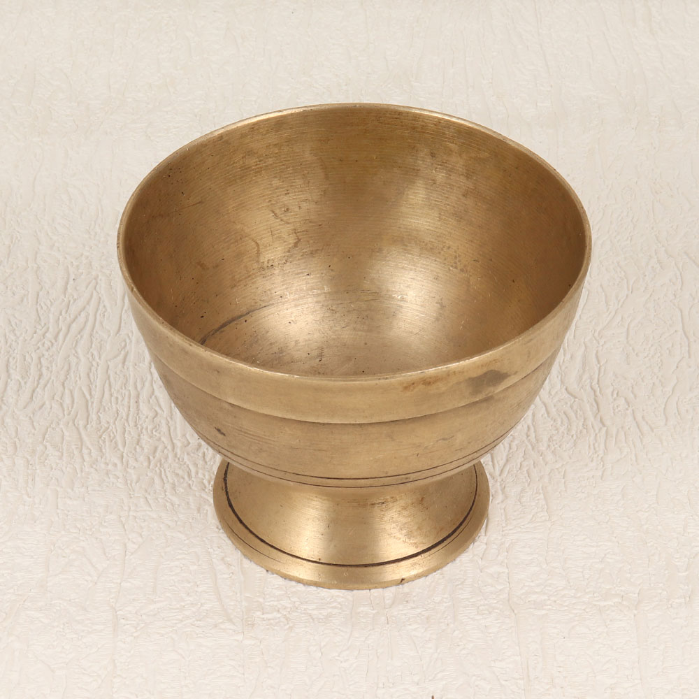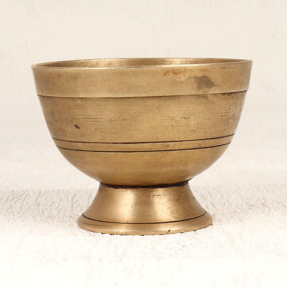 Enhance your spiritual and aesthetic experience with our Vintage Brass Kumkum Bowl with Base Stand, a timeless piece meticulously crafted by highly talented Indian artisans in the revered South Indian Art tradition. Fashioned from high-quality brass, this exquisite bowl features an antique brown finish that adds an air of antiquity and charm. Designed for use during prayers, rituals, and havans, the bowl gracefully holds kumkum tilak, enhancing the sanctity of your sacred moments. Its versatile appeal extends beyond the realm of spirituality, making it a splendid addition to your home, office, restaurant, hotel, or cafe prayer room. The handmade craftsmanship ensures each piece is unique, offering a touch of tradition and elegance to any space. This vintage masterpiece not only serves a functional purpose but also makes for a captivating decor item, perfect for those who appreciate the beauty of timeless art. It's an ideal addition to any vintage collection and a thoughtful gift for your family, friends or relatives on special, festive, or auspicious occasions, symbolizing both tradition and enduring beauty.