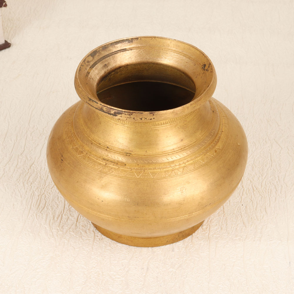 Immerse your sacred rituals in timeless elegance with this exquisite Vintage Brass Holy Water Pot. Handcrafted by professional Indian artisans from Gujarat, this piece showcases the rich heritage of traditional craftsmanship. Made from high-quality brass, the pot features an antique brown finish that exudes an aura of antiquity and spiritual significance. Perfect for rituals, havans, and offering water to the Shivling in temples, this holy water pot adds a touch of divine grace to your spiritual practices. Its versatile design allows it to be seamlessly integrated into various settings, making it a captivating addition to your home, office, restaurant, hotel, or cafe. The pot's aesthetic allure also makes it a remarkable decorative piece, enhancing the ambiance with its vintage charm. As a thoughtful gift, this handcrafted masterpiece is ideal for presenting to your family, friends or relatives on special, festive, or auspicious occasions. Embrace the divine connection and cultural legacy embodied in this Vintage Brass Holy Water Pot, a testament to the craftsmanship and spirituality of the artisans from Gujarat.