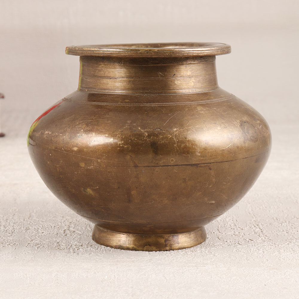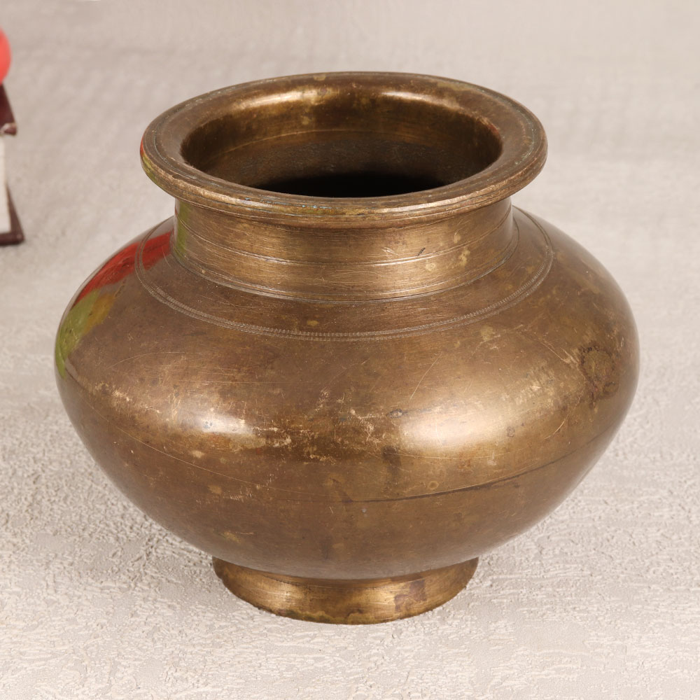 A Vintage Brass Holy Water Pot that is a testament to the skilled artisans of Gujarat, India and a timeless symbol of spirituality and craftsmanship. Handmade with precision and passion, this exquisite piece exudes the charm of antiquity with its rich antique brown finish. Crafted from high-quality Brass, the pot serves a dual purpose - it holds sacred water during prayers, havan, and auspicious occasions, while also doubling as a stunning vessel for flower decorations. Versatile and elegant, this artefact seamlessly blends tradition with aesthetics, making it a perfect addition to your home, office, restaurant, hotel, or cafe. Its vintage allure ensures it stands out as a distinctive decoration piece, complementing any space with its unique character. Ideal for collectors, it can be a cherished addition to vintage collections. Moreover, it makes for a thoughtful and meaningful gift for your family, friends or relatives on special, festive, or auspicious occasions, carrying the essence of spirituality and craftsmanship from the heart of India.