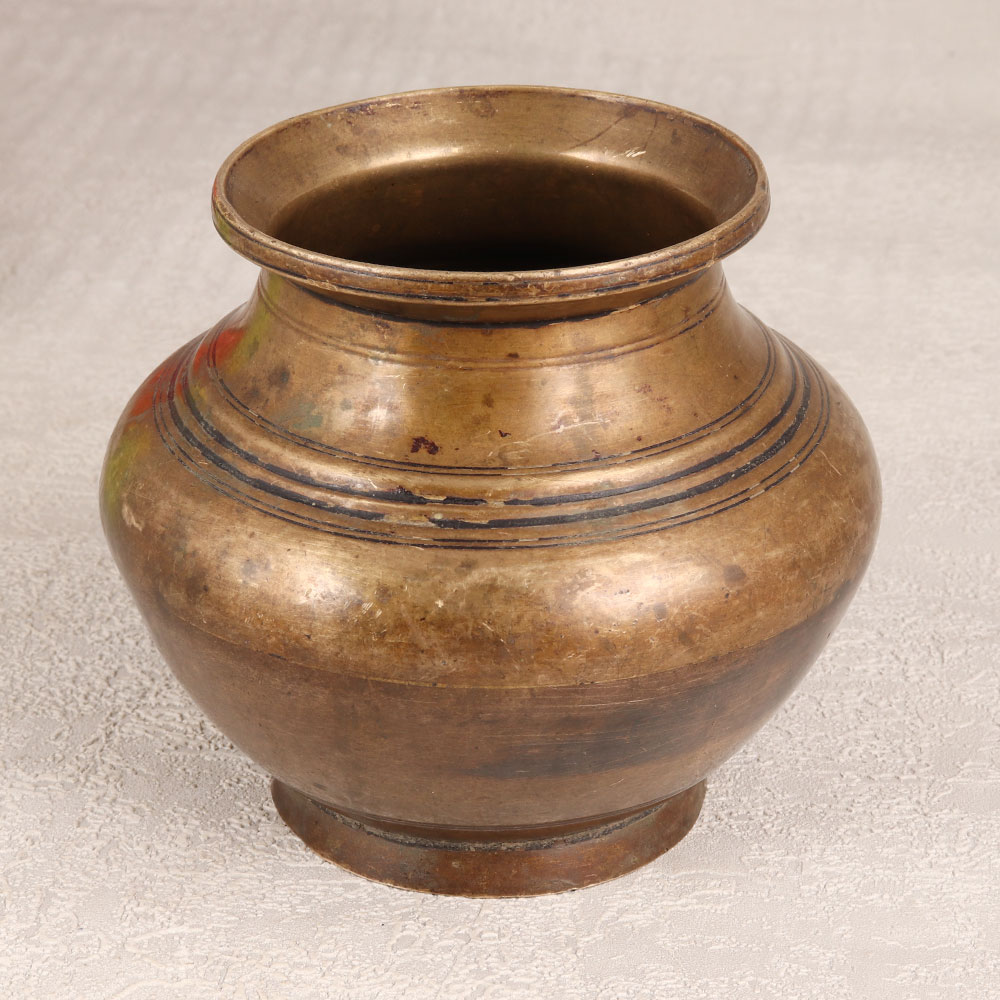 Immerse yourself in the spiritual charm of this exquisite vintage Brass holy water pot that is a timeless creation meticulously crafted by highly skilled Indian artisans from Himachal. This sacred vessel is adorned with an antique brown finish and is not just a utilitarian item but a symbol of tradition and reverence. Handmade with precision and care, the pot is fashioned from high-quality Brass, reflecting the rich heritage of craftsmanship. Ideal for prayer, havan, and auspicious occasions, this versatile pot serves as a sanctified repository for holy water or as an elegant base for flower decorations. Its enduring allure makes it a splendid addition to any home, office, restaurant, hotel, or cafe, enhancing the ambiance with its vintage charm. The pot is not merely an artefact; it's a piece of history that can be proudly displayed or incorporated into a curated vintage collection. Share the blessings by gifting this splendid creation to your family, friends or relatives on special, festive, or auspicious occasions, imparting a touch of tradition and spirituality to their lives.