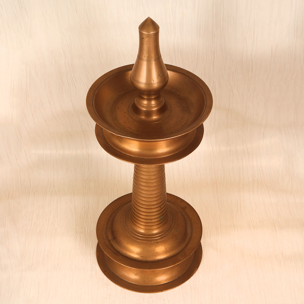 Embrace the enchanting ambiance of a bygone era with this vintage brass oil lamp, expertly crafted in the rich tradition of South Indian art. Ignite the flame and let its mesmerizing glow fill your space, transporting you to a realm of timeless elegance and tranquility. This heirloom-quality lamp is more than just a functional piece - it's a work of art that will elevate the aesthetic of your home. Whether you use it as a centerpiece on your coffee table or a calming accent in your meditation nook, its captivating glow is sure to captivate all who experience it. Imagine the flickering flame casting a gentle, golden light across your room, evoking the charm and tranquility of a bygone era. The vintage brass oil lamp is the perfect blend of form and function, designed to last for generations and infuse your space with the rich cultural heritage of South India. Embrace the magic of a simpler time and let this stunning lamp transport you to a world of serenity and wonder. Elevate your living space and create an atmosphere of timeless elegance with the mesmerizing glow of this vintage treasure.