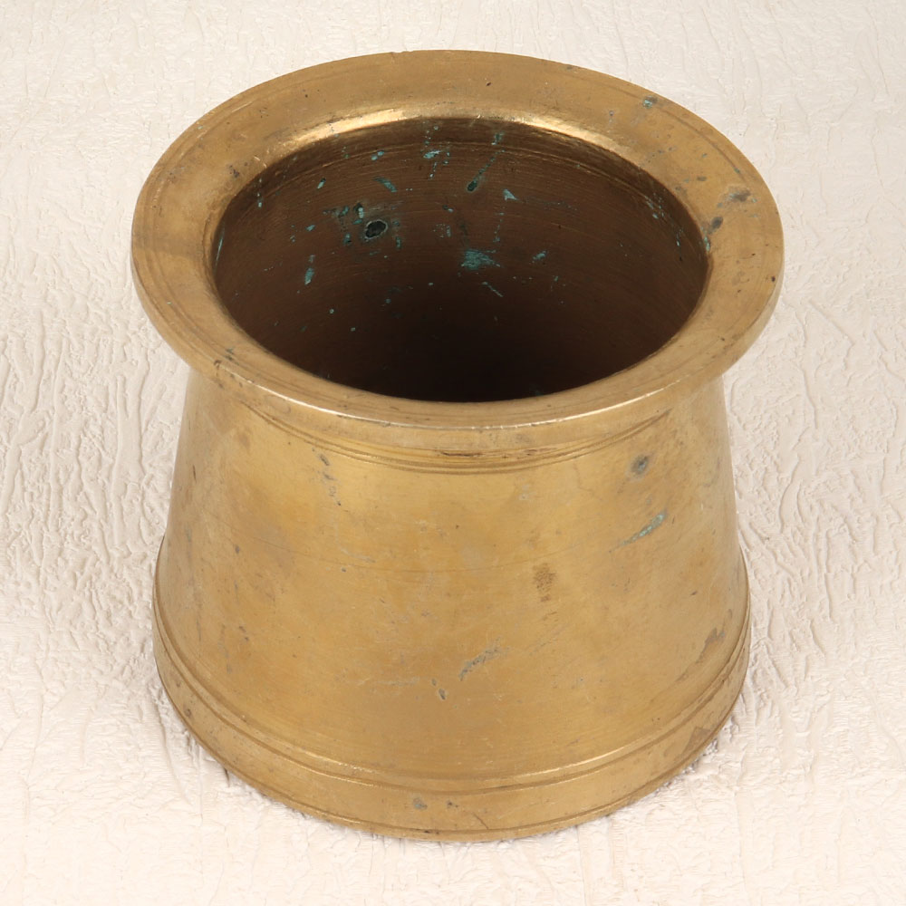 Enhance your spiritual space with the exquisite Vintage Brass Panchpatra Holy Pot that is a testament to the rich traditions of South Indian Art. Meticulously handcrafted by talented Indian artisans, this sacred pot is made from high-quality brass, boasting an antique brown finish that adds a touch of timeless elegance. Versatile in its purpose, the Panchpatra is an essential element for prayer, rituals, and havans, enhancing the sacred ambiance of your home, office, restaurant, hotel, or cafe. Beyond its spiritual significance, this holy pot doubles as a charming decorative piece, seamlessly blending antiquity with contemporary aesthetics. Its multifunctional design allows it to serve as a unique flower pot, further contributing to its appeal. Ideal for collectors of vintage treasures, this Panchpatra becomes a distinguished addition to your curated ensemble. Additionally, it makes for a thoughtful and meaningful gift for your family, friends or relatives on special, festive, or auspicious occasions, symbolizing the enduring beauty of tradition and spirituality. Embrace the heritage and craftsmanship embodied in this Vintage Brass Panchpatra, celebrating the artistry and cultural richness of India.