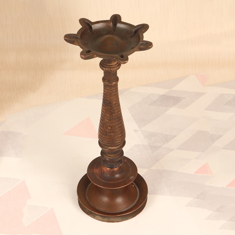 Escape the monotony of modern life and immerse yourself in the captivating ambiance of our Vintage Brass Oil Lamp. Crafted with the utmost care and attention to detail, this exquisite lamp is a celebration of the rich cultural heritage of South India Art. Imagine the warm, flickering glow of this oil lamp casting a serene and tranquil atmosphere throughout your home. More than just a source of illumination, this lamp is a work of art that will transport you to a bygone era, evoking a sense of nostalgia and timeless charm. Whether you're looking to create a cozy and inviting ambiance in your living room, a peaceful meditation corner, or a thoughtful housewarming gift, our Vintage Brass Oil Lamp is the perfect choice. Its versatile design seamlessly blends with a variety of interior styles, from rustic farmhouse to modern minimalist, making it a stunning addition to any space. Experience the captivating allure of this enchanting lamp and let its mesmerizing glow transform your world.