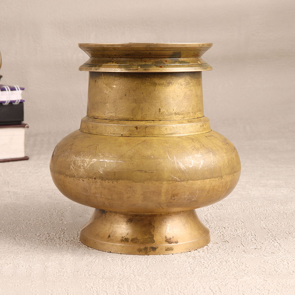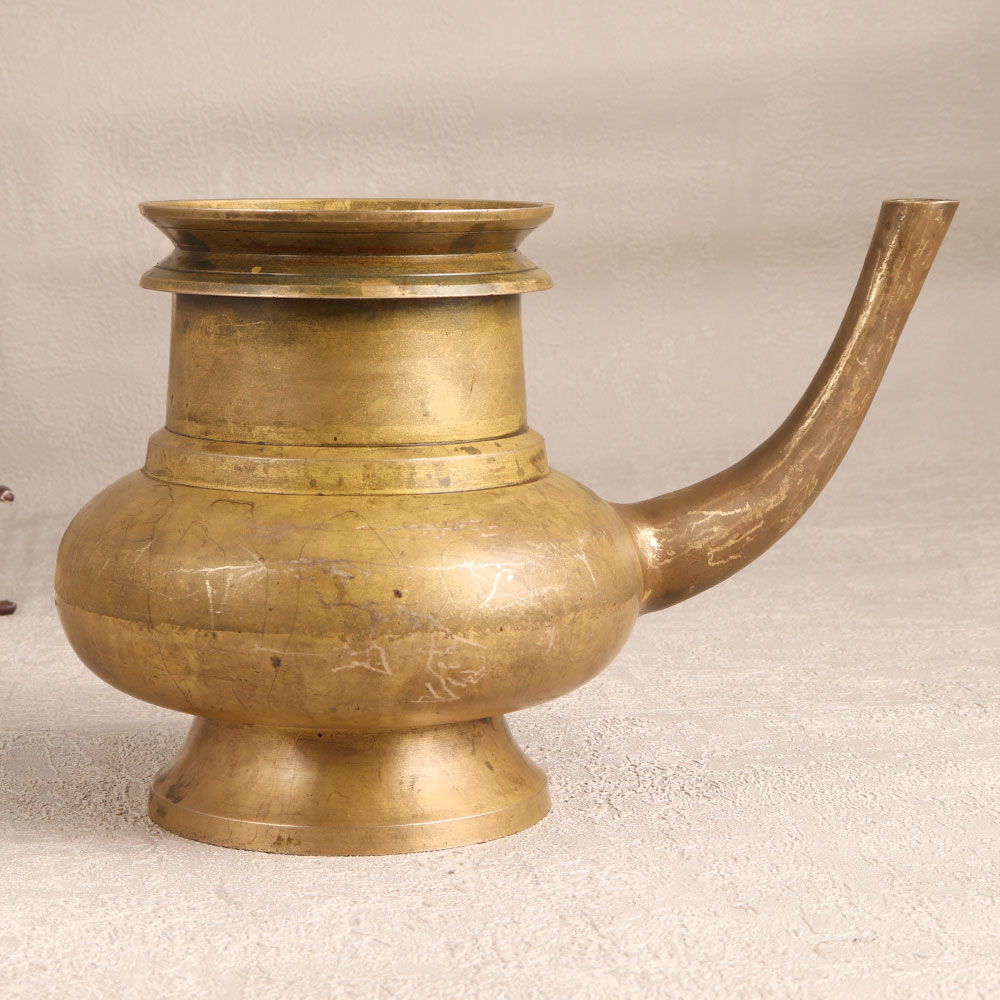 Immerse your sacred moments in the divine elegance of our Brass Sagar Pot with Spout which is a vessel steeped in tradition and crafted with meticulous artistry by highly talented Indian artisans. Inspired by the rich heritage of South Indian Art, this holy water pot seamlessly blends functionality with aesthetic allure. Fashioned from high-quality brass, the antique brown finish exudes a timeless charm that resonates with spirituality. This versatile pot serves a dual purpose, whether cradling holy water during prayers or adorned with vibrant flowers, adding a touch of sanctity and beauty to any space. The intricate design reflects the cultural finesse of South India, making it an ideal addition to your home, office, restaurant, hotel, or cafe. An impeccable gift for your family, friends or relatives on special, festive, or auspicious occasions, the Brass Sagar Pot with Spout is a tangible embodiment of sacred aesthetics and cultural reverence. Elevate your surroundings with this exquisite piece that not only enhances decor but also captures the essence of vintage charm.