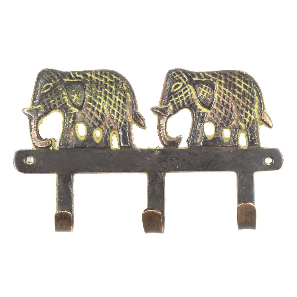 Brass Patina Key Hook Holder Elephant Design Wall Mount Key Hanger Shape of Elephant Looks Very Beautiful on Wall Home Kitchen Decor, Gift for Christmas or Birthday to Your Loved Ones.