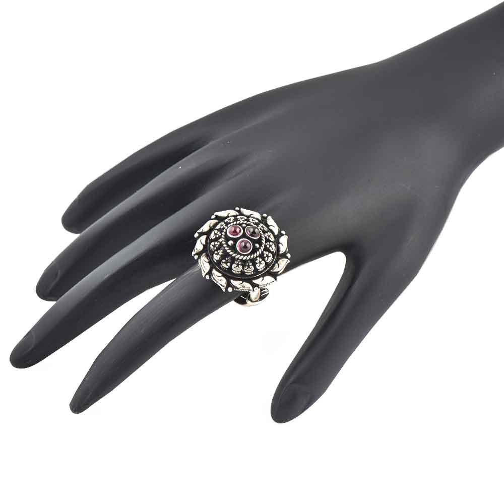 Hand crafted Embossed Motifs on 92.5 Sterling Silver Ring is the ideal gift for your sister,mother, friend , girlfriend, colleague and can be matched with your traditional outfits on weddings, engagements, reception , dinner party , birthday party etc.