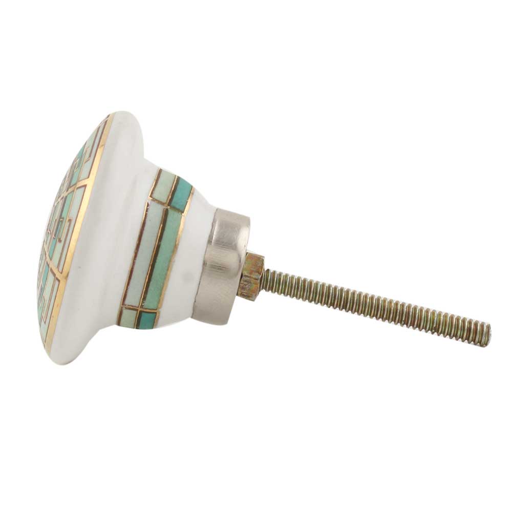 Elevate your furniture with the Emerald Hue Golden Pattern Ceramic Dresser Knobs. The captivating emerald green shade paired with intricate golden designs exudes a luxurious and sophisticated vibe. These knobs are ideal for enhancing dressers, cabinets, or drawers, providing a stunning contrast of colors and an elegant finish to any piece.