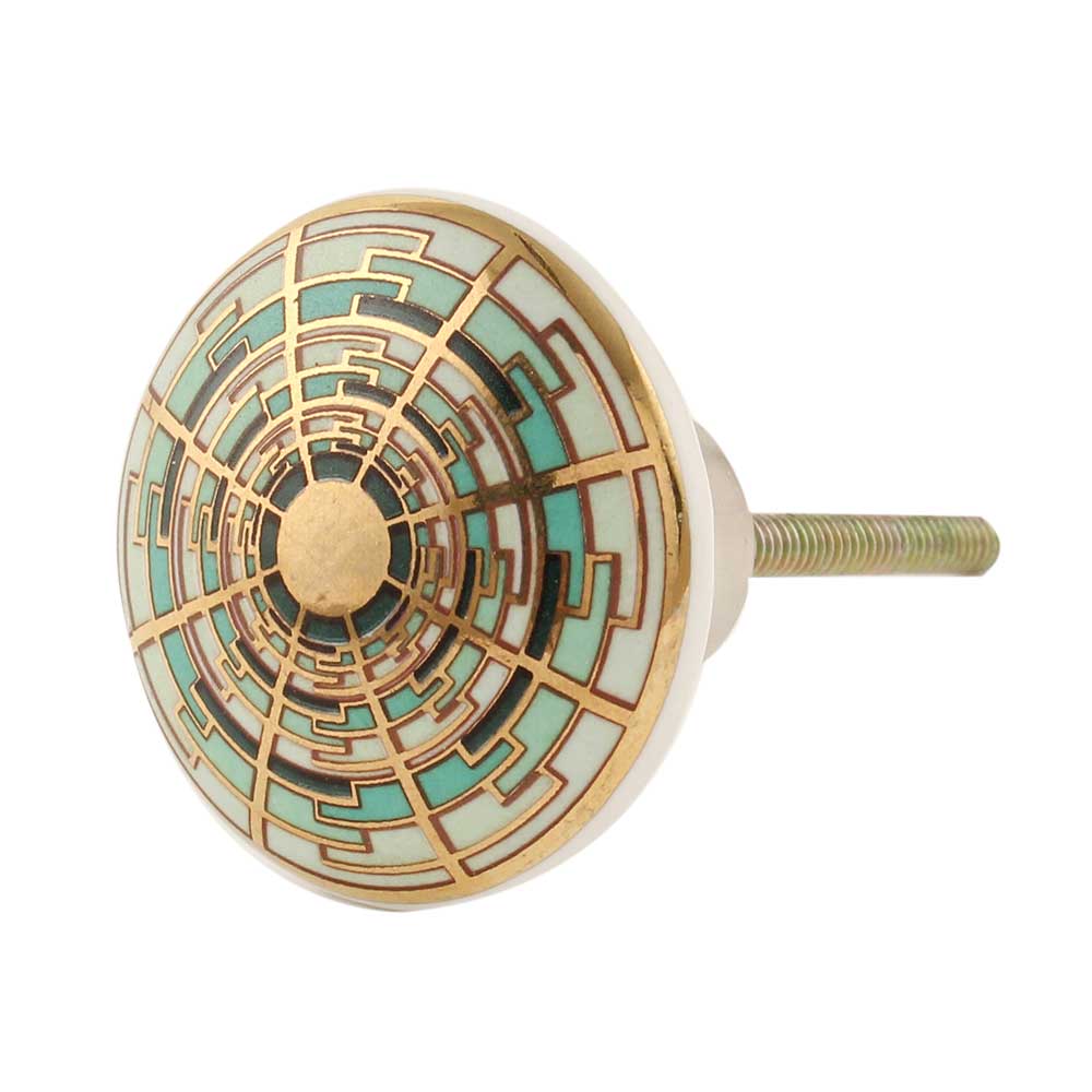 Emerald Hue Golden Pattern Ceramic Dresser Knobs