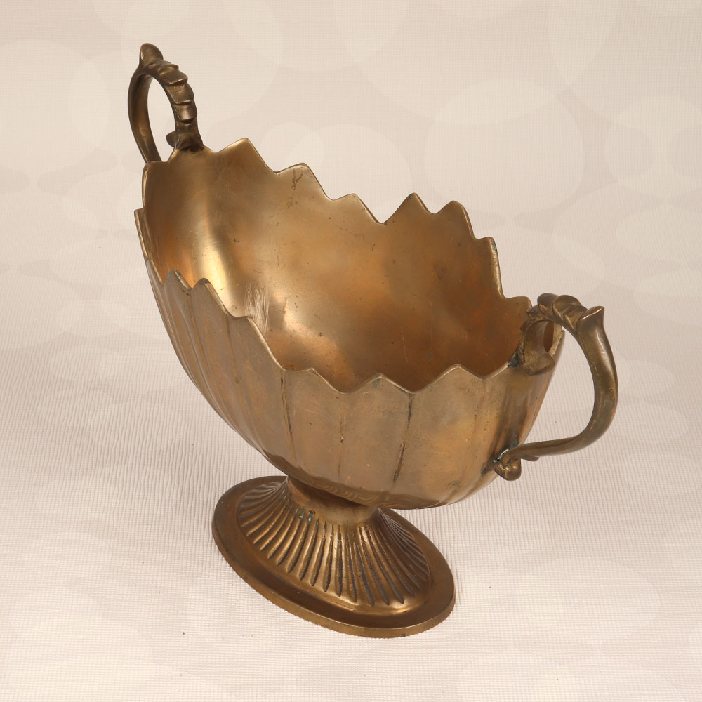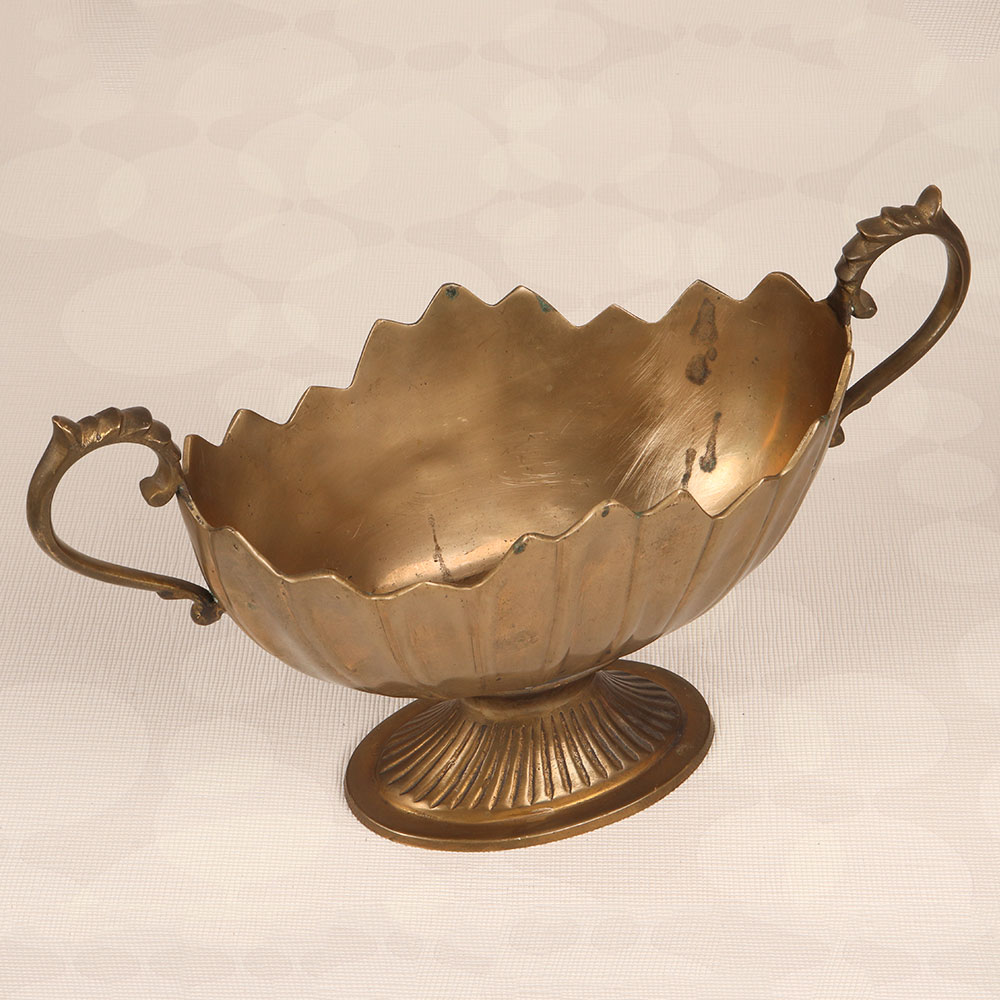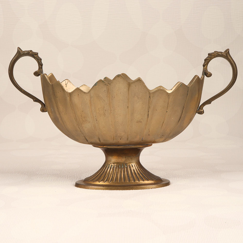 This Brass Fruit Basket is a timeless piece of functional art that seamlessly blends utility with elegance. Handcrafted with precision and passion by highly talented Indian artisans, this stunning fruit basket embodies the rich heritage of English Art, showcasing meticulous detailing and a lustrous antique brown finish. Crafted from high-quality brass, this basket features two delicately designed handles, adding a touch of sophistication to its overall charm. Its versatile design makes it a perfect addition to any setting, be it at home, office, restaurant, hotel, or cafe, where it effortlessly enhances the aesthetic appeal of any space. Not just a utilitarian item, this brass fruit basket is a visual delight, creating a sense of opulence and refinement. The warmth of its antique brown finish imparts a classic feel, making it an ideal decor piece for both traditional and contemporary interiors. This handmade masterpiece isn't just an accessory; it's an expression of craftsmanship and artistry. Moreover, it serves as a thoughtful and meaningful gift for your family, friends or relatives on special, festive, or auspicious occasions. Elevate your surroundings with this Brass Fruit Basket that is a testament to tradition, skill, and timeless beauty.