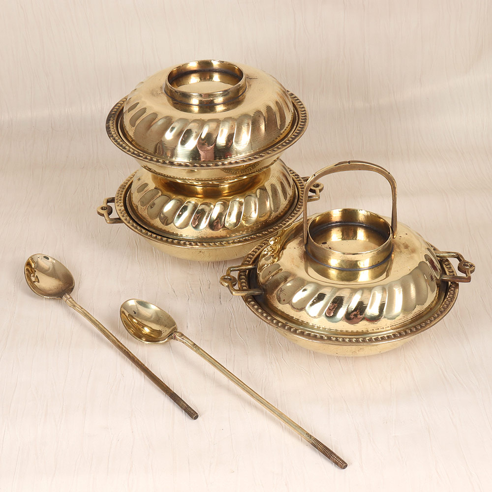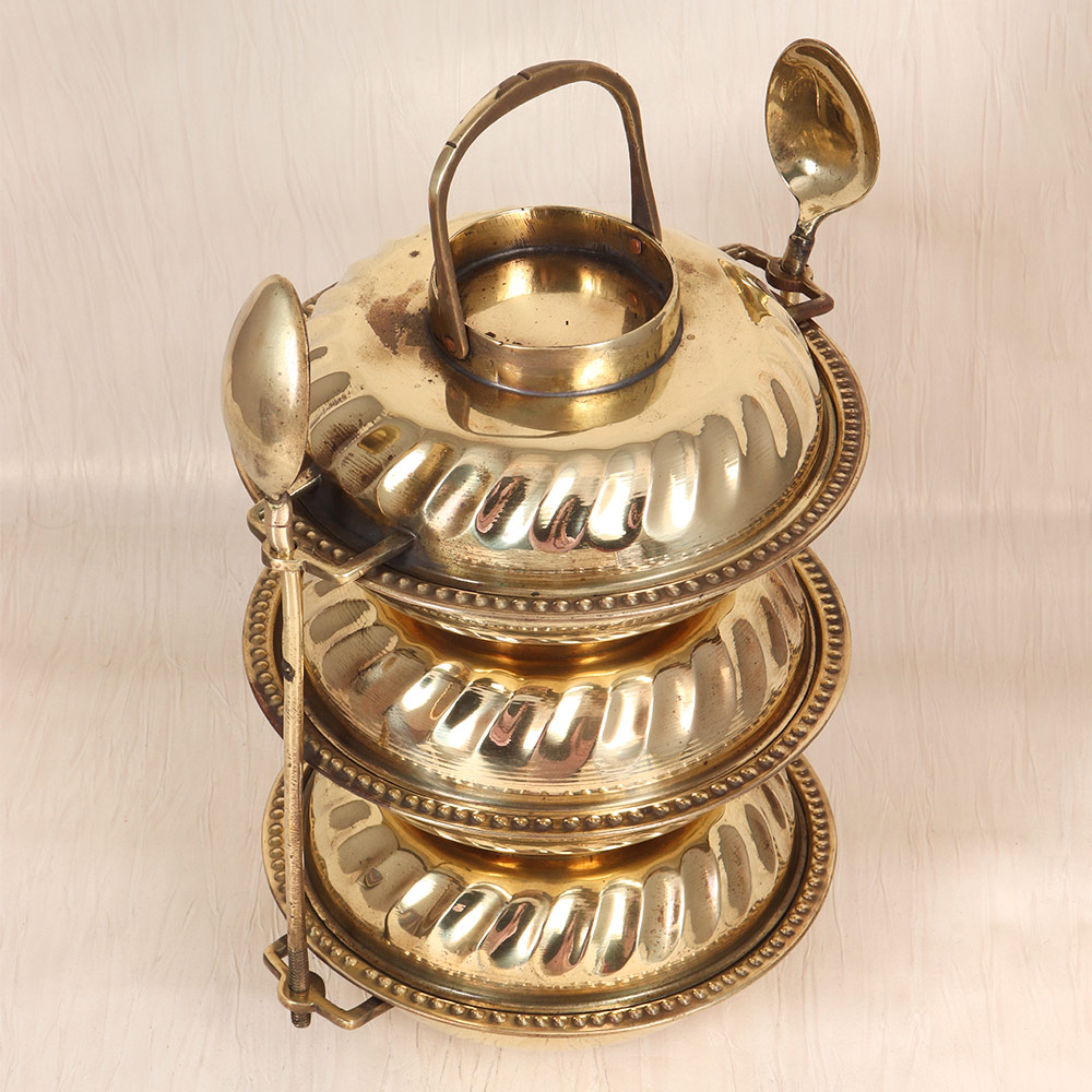 - Crafted from durable and lustrous brass, this tiffin box exudes a warm, golden glow that will instantly add a touch of vintage elegance to your space.