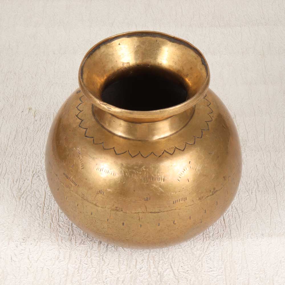 Step back in time with this antique-inspired engraved brass pot handcrafted in South India. Lovingly made by artisans carrying on generations-old metalworking traditions, this vintage-style vessel makes a meaningful addition to any home. Display your favorite flowering plants or leafy greens in this brass pot to add a touch of antiquity to any room. The ornate engraving and handsome patina give it the look of a treasured heirloom handed down through generations. Place it in an entryway to greet guests with beauty, or let it adorn your patio amongst your outdoor plants. For lovers of all things vintage, this brass engraved pot offers artisanal charm and versatility. The engraved motifs reflect the outstanding metalcraft of South Indian artisans, making this a special vessel to cherish. Let its timeless elegance and handmade artistry bring historical allure to your home.