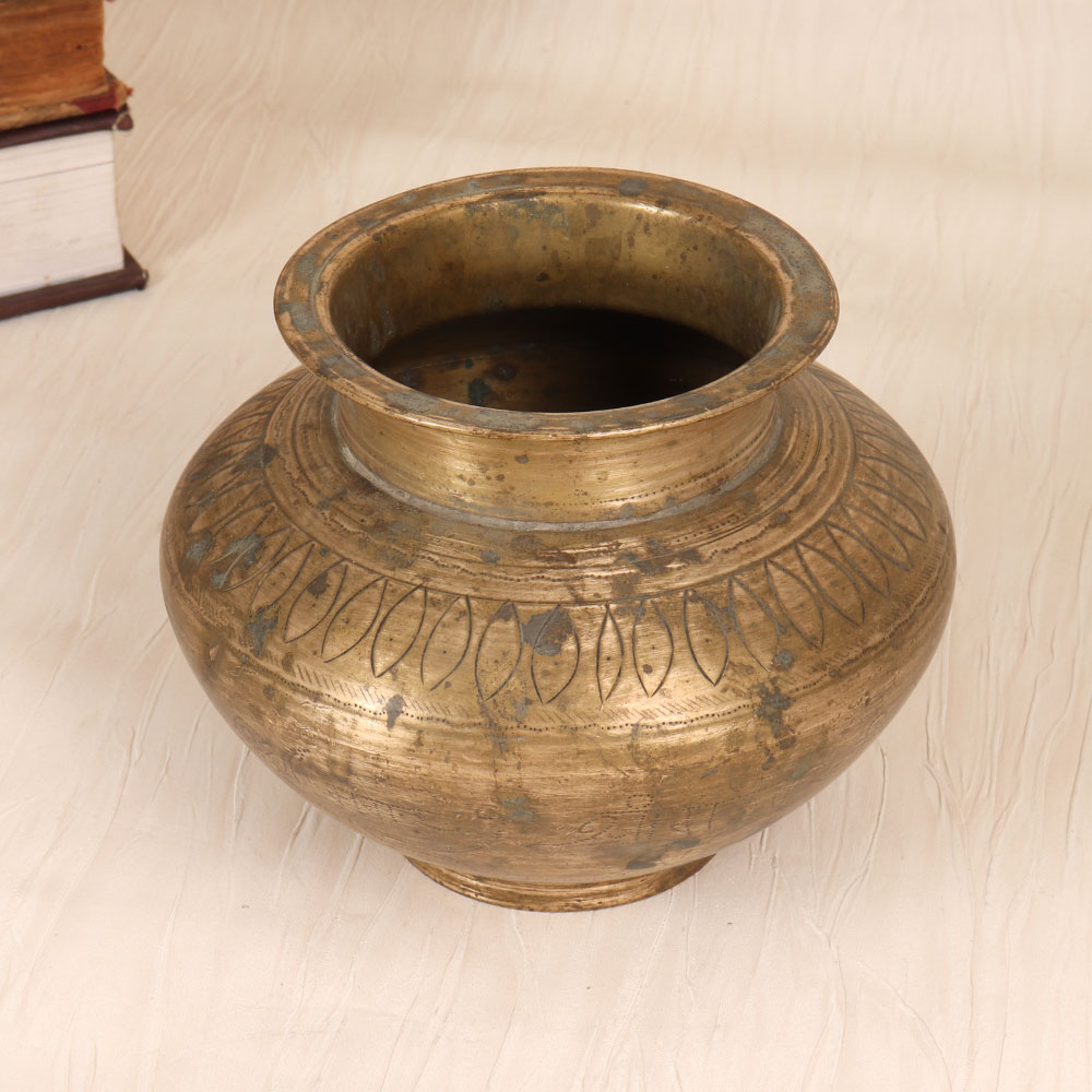 Immerse yourself in the rich cultural heritage of Gujarat, India, with this stunning vintage brass holy water pot. Crafted by skilled artisans using time-honored techniques, this sacred vessel invites you to connect with the timeless traditions that have nourished the spiritual practices of countless devotees. As you pour the holy water from this exquisite pot, feel the weight of the brass in your hands and the energy of the carvings, which pay homage to the deities and symbols revered in the region. Allow this vessel to become a touchstone for your spiritual practice, grounding you in the ancient wisdom that has flowed through generations of devotees. Whether you're seeking to deepen your own personal connection to the divine or looking to add a stunning piece of traditional Indian craftsmanship to your home, this vintage brass holy water pot is a must-have. Invest in a work of art that will become a cherished heirloom, a tangible reminder of the rich cultural legacy that has shaped the spiritual traditions of Gujarat.