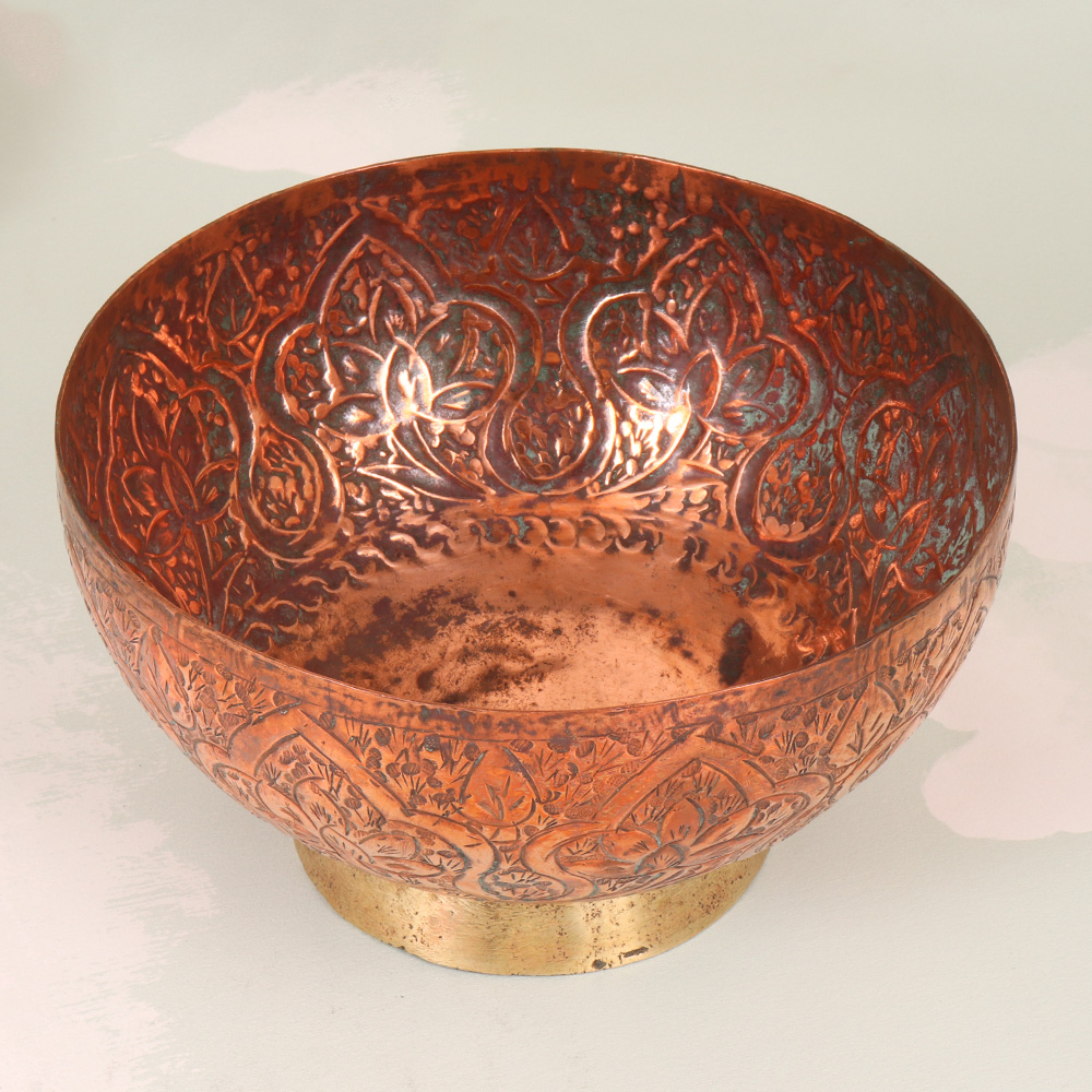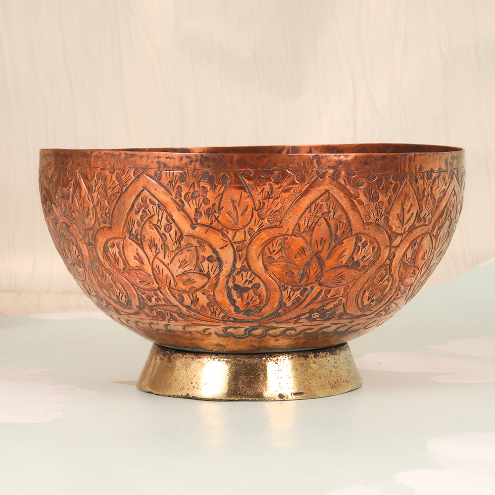 Immerse yourself in the captivating world of Peshawari Art with the Vintage Copper Islamic Bowl, a true masterpiece that will elevate the ambiance of any space. Crafted with unparalleled skill and attention to detail, this exquisite bowl is a testament to the rich cultural heritage of the Islamic world. Bring the allure of the Islamic world into your home and experience the transformative power of this Vintage Copper Islamic Bowl. Its captivating presence will instantly elevate the ambiance of any room, evoking a sense of wonder and cultural appreciation in all who behold it. Whether you're a connoisseur of fine art, a collector of unique cultural artifacts, or simply someone who appreciates the beauty of exceptional craftsmanship, this Vintage Copper Islamic Bowl is a must-have addition to your collection. Immerse yourself in the timeless elegance of Peshawari Art and let this exquisite piece inspire and captivate you every day.