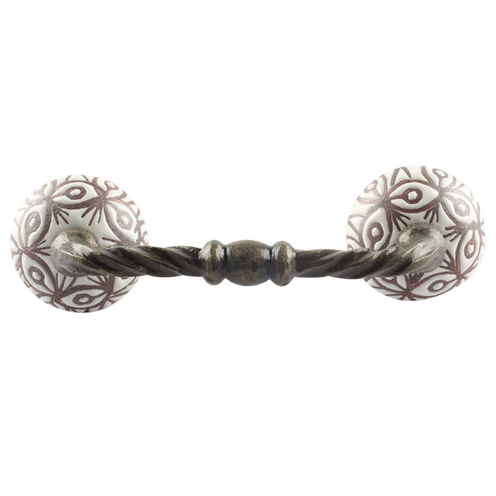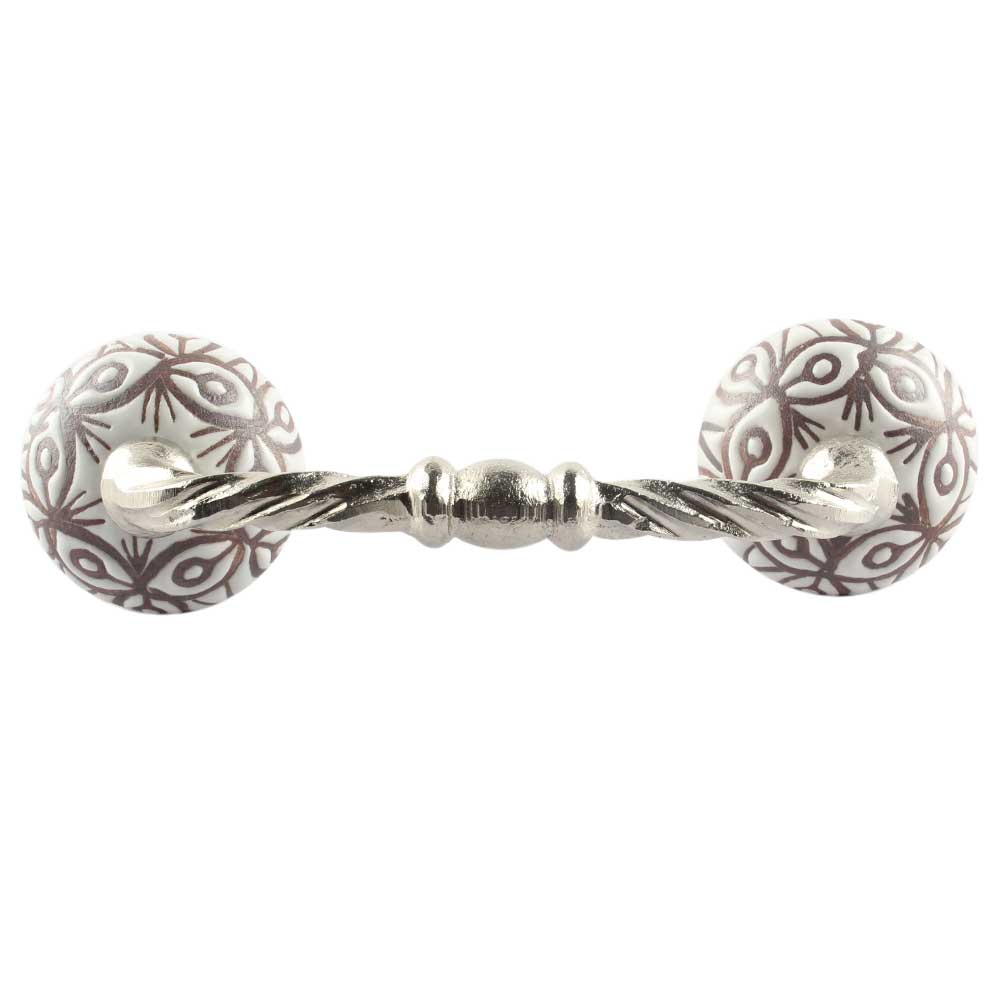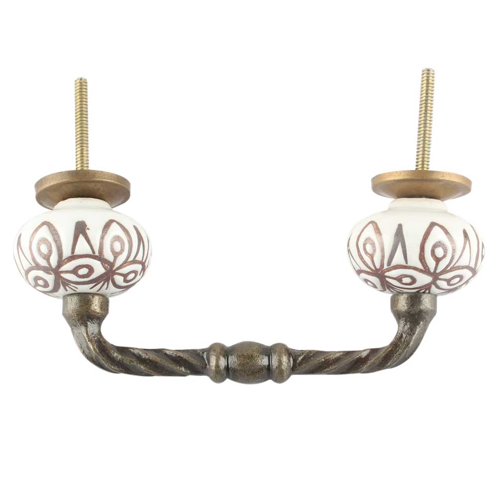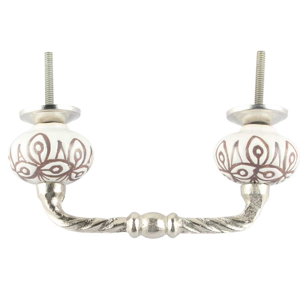 Etched Ceramic Cut Bridge Handle in White. Ideal for Drawer, Dresser, Cabinet, Wardrobe, Cupboard and Almirah etc.
