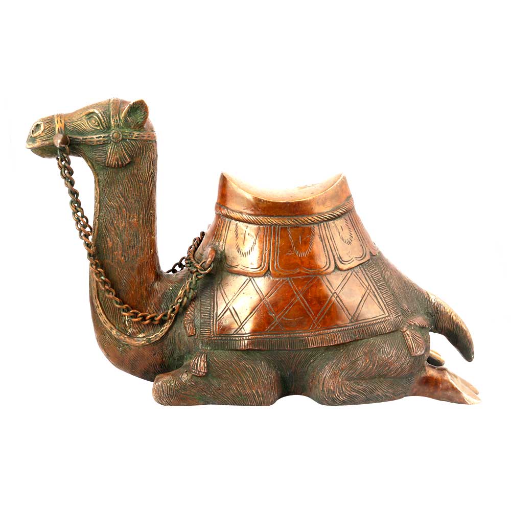 Beautiful Large Sitting Camel From India in Solid Brass. Camels are a Huge Part of the North Indian Lifestyle and are Featured Prominently in Their Decor. They are Much Treasured, and There are Many Camel Fairs in Regions of Rajasthan with the Pushkar Camel Fair Being the Most Famous.