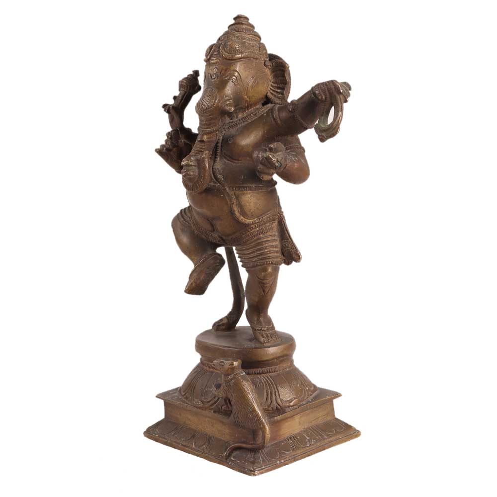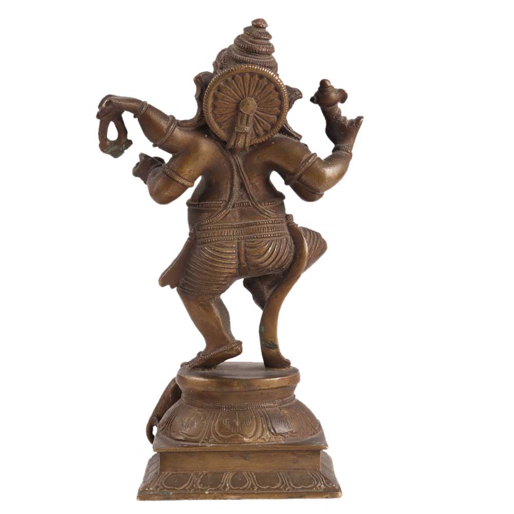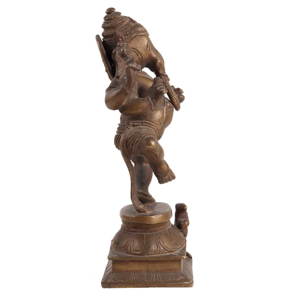 Place this rare Dancing Ganesha Brass Idol on any table unit to enhance its appearance. This elegant centerpiece depicts Lord Ganesha in a dancing posture. The fine details of Lord Ganesha's ornaments and mukut add to the charm of this idol. This is also an excellent stylish item for your home. Excellent gift for traditional occasions such as housewarmings and other traditional functions. The dancing Ganesha idol will look great on your shelf and serve as an excellent decorative item. You can also give it to your loved ones at house warming party parties and other traditional functions.