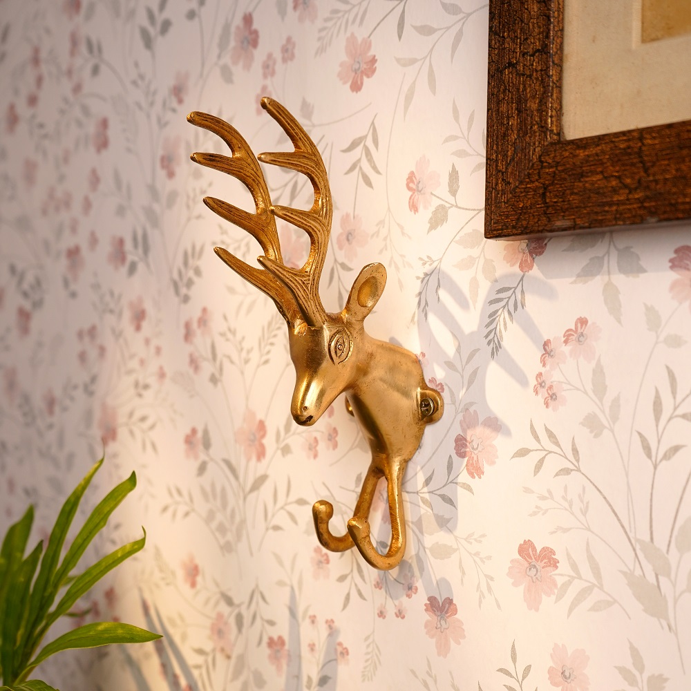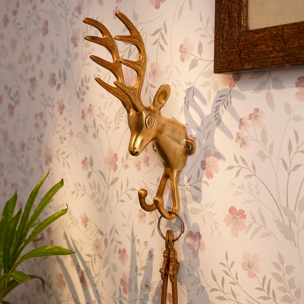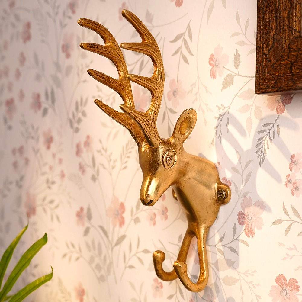 Made By the Creative Artisans From Rural India brass deer head with Antlers . It has Two Hooks Which One can Use to Hang the Calendars, Wall Notes, Keys Etc. You can Efficiently Use It in the Room Interior of Living Rooms, Bed Rooms, Garden.