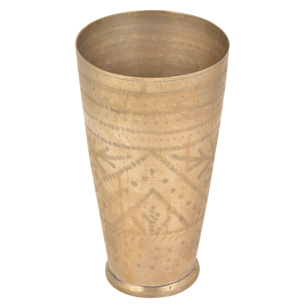 Faded Engraved Design Brass Lassi Glass With Leaf In Geometrical Pattern
