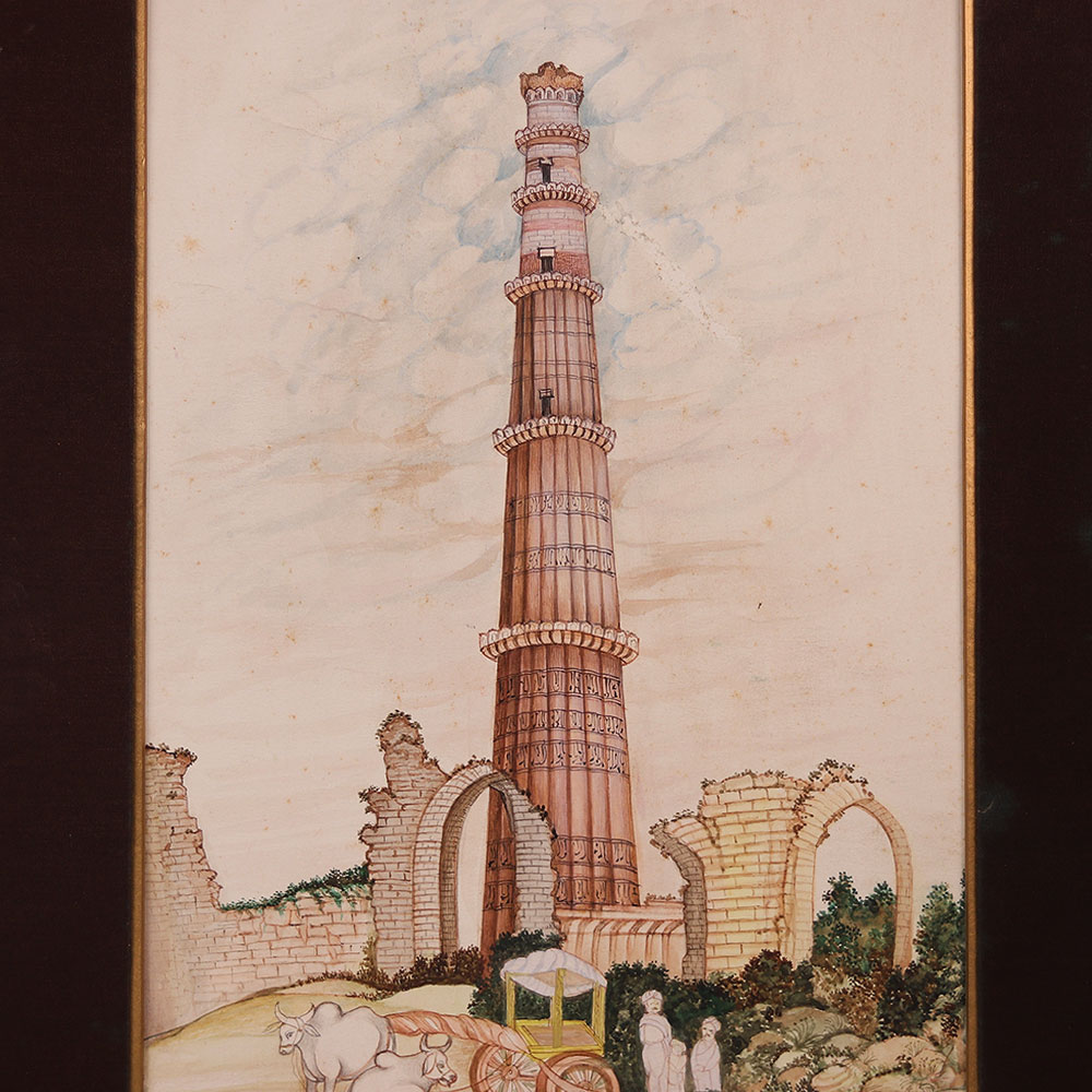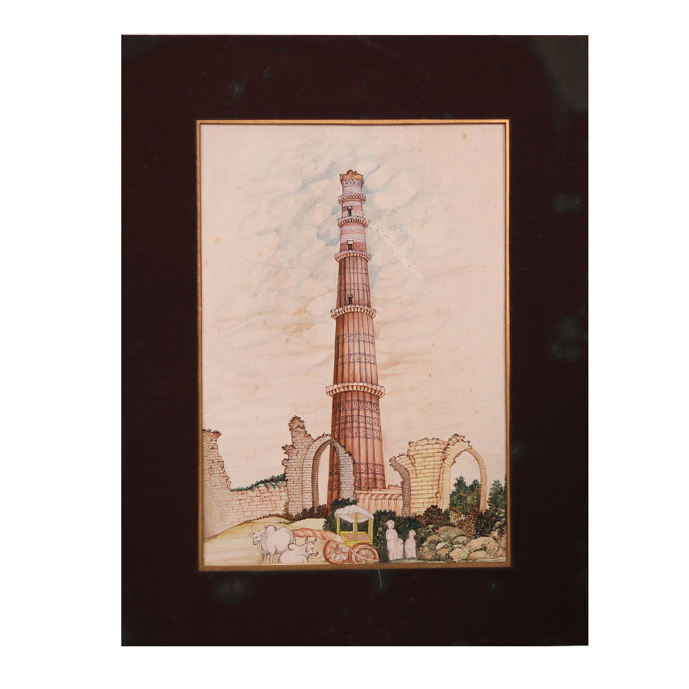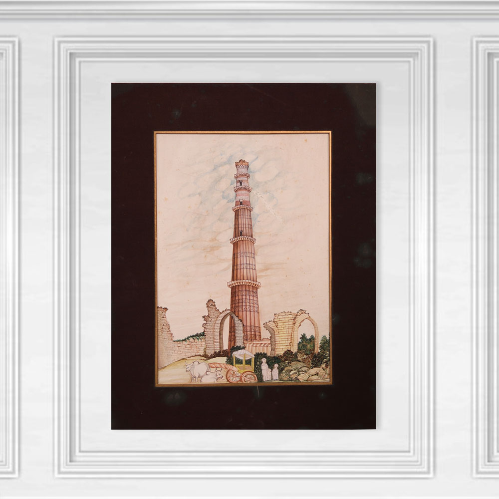 - Stunning fine paper painting of the iconic Qutab Minar monument