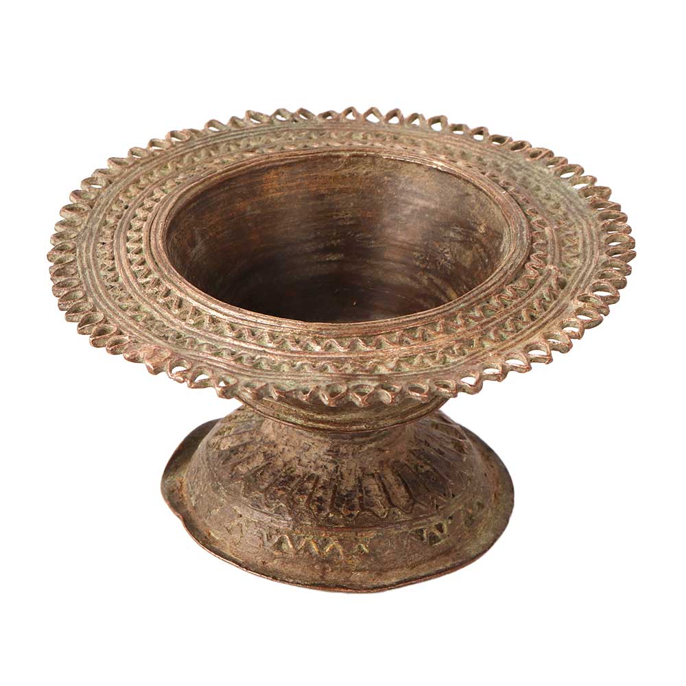 At social occasions, the Fine Carved Brass Betel Nut Spitting Bowl, sometimes referred to as the Peekdan, is used to collect and discard the remains of betel nuts. It has elaborate carving and design on the surface and is handcrafted from premium brass, giving it a distinctive and beautiful appearance. The Peekdan is the ideal device for spitting out betel nut liquid since it has a wide, shallow bowl-shaped form. Betel nuts are frequently seen in Indian households and are consumed by guests as a symbol of hospitality at social occasions like weddings. Overall, the Beautifully Carved Brass Betel Nut Spitting Bowl is a work of art that honours the rich cultural legacy as well as being a useful object.