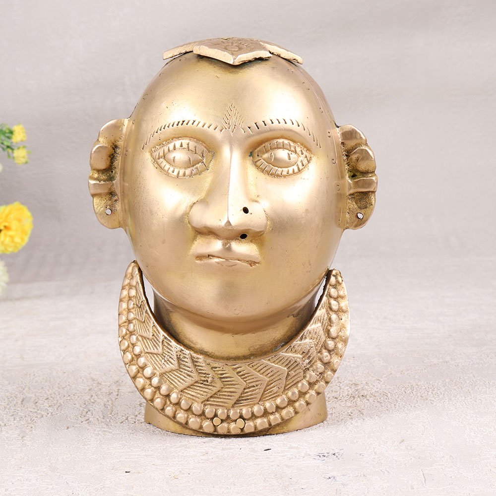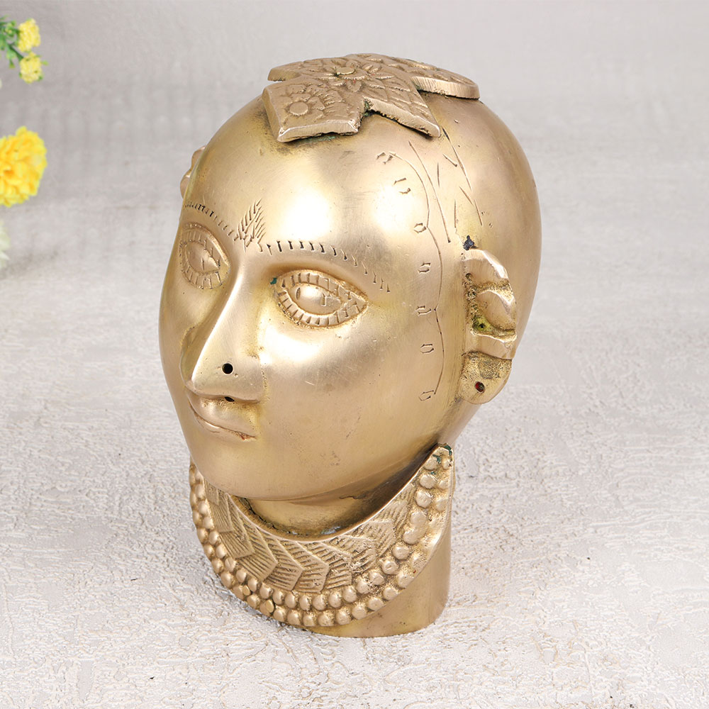 Buy a Vintage Brass Gauri Head online that is a divine embodiment of Goddess Parvati crafted with precision and devotion by highly skilled Indian artisans from Gujarat. This masterpiece is meticulously handmade from high-quality white Brass, adorned with a lustrous brown finish that exudes a timeless charm. This Gauri head, with its intricate details and vintage allure, serves as a captivating addition to any space. Perfect for home, office, restaurant, hotel, or cafe prayer rooms, it seamlessly blends spirituality with aesthetic appeal. Whether placed for worship or as an ornamental piece, its versatile nature lends itself to diverse settings. Emanating the rich cultural heritage of Gujarat, this artefact transcends time, making it an ideal addition to any vintage collection. Celebrate special, festive, or auspicious occasions by gifting this divine creation to your family, friends or relatives, symbolizing blessings, love, and the enduring craftsmanship of Indian artistry. Embrace the divine aura and cultural richness with the Vintage White Brass Gauri Head.