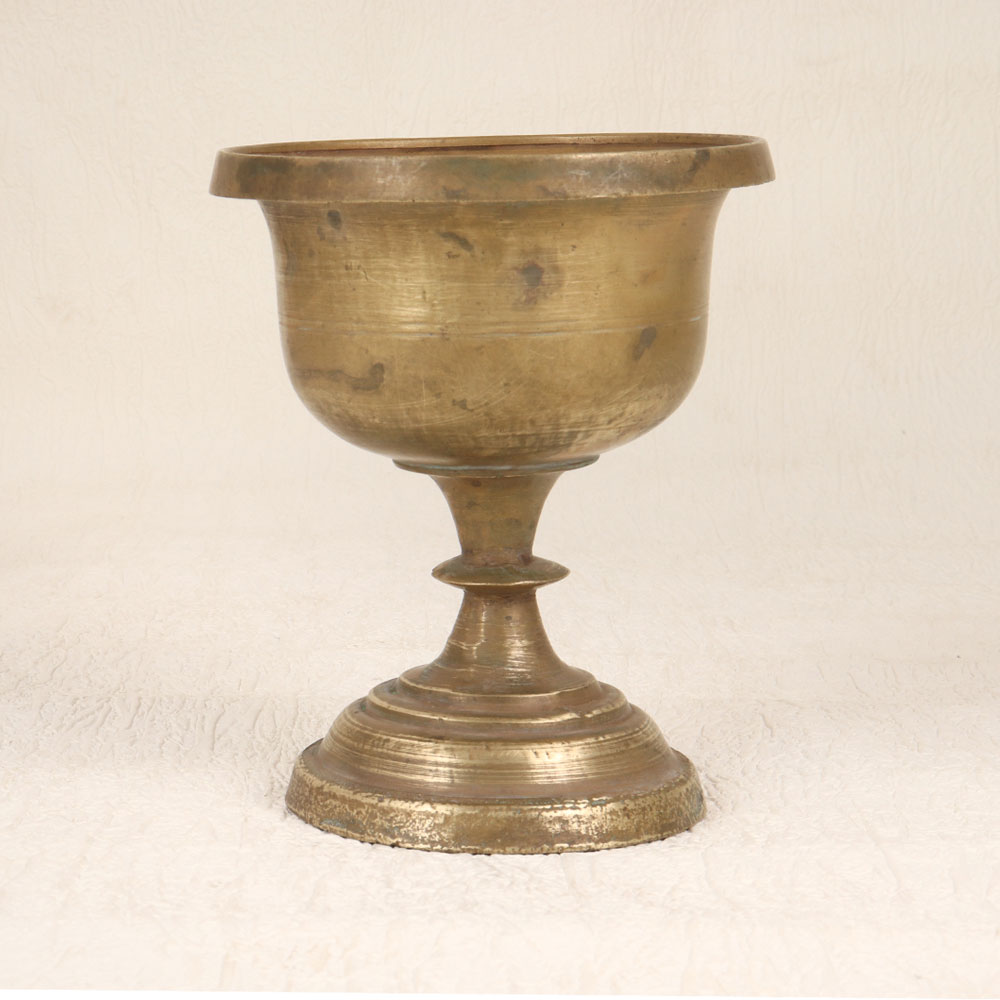 This Vintage Brass Holy Cup is a masterpiece crafted by highly talented Indian artisans. Handmade with precision and care, this holy cup is designed from high-quality brass, showcasing a seamless blend of artistry and devotion. Its antique brown finish adds a touch of antiquity, reminiscent of traditional rituals and cultural heritage. This sacred vessel serves a multifaceted purpose, gracing prayer rooms, homes, offices, restaurants, hotels, and cafes alike. During prayer, rituals, and havans, it holds kumkum tilak, symbolizing auspiciousness and spiritual connection. Beyond its religious significance, the cup's exquisite design also renders it a striking decorative element, perfect for adding a touch of divine charm to any space. Ideal for collectors of vintage treasures, this holy cup is a testament to the enduring craftsmanship of Indian traditions. It makes for a thoughtful and meaningful gift, enriching the spirit of special, festive, or auspicious occasions. Embrace the divine allure and cultural richness embodied in the Vintage Brass Holy Cup which is a timeless artefact that bridges the gap between tradition and contemporary aesthetics.