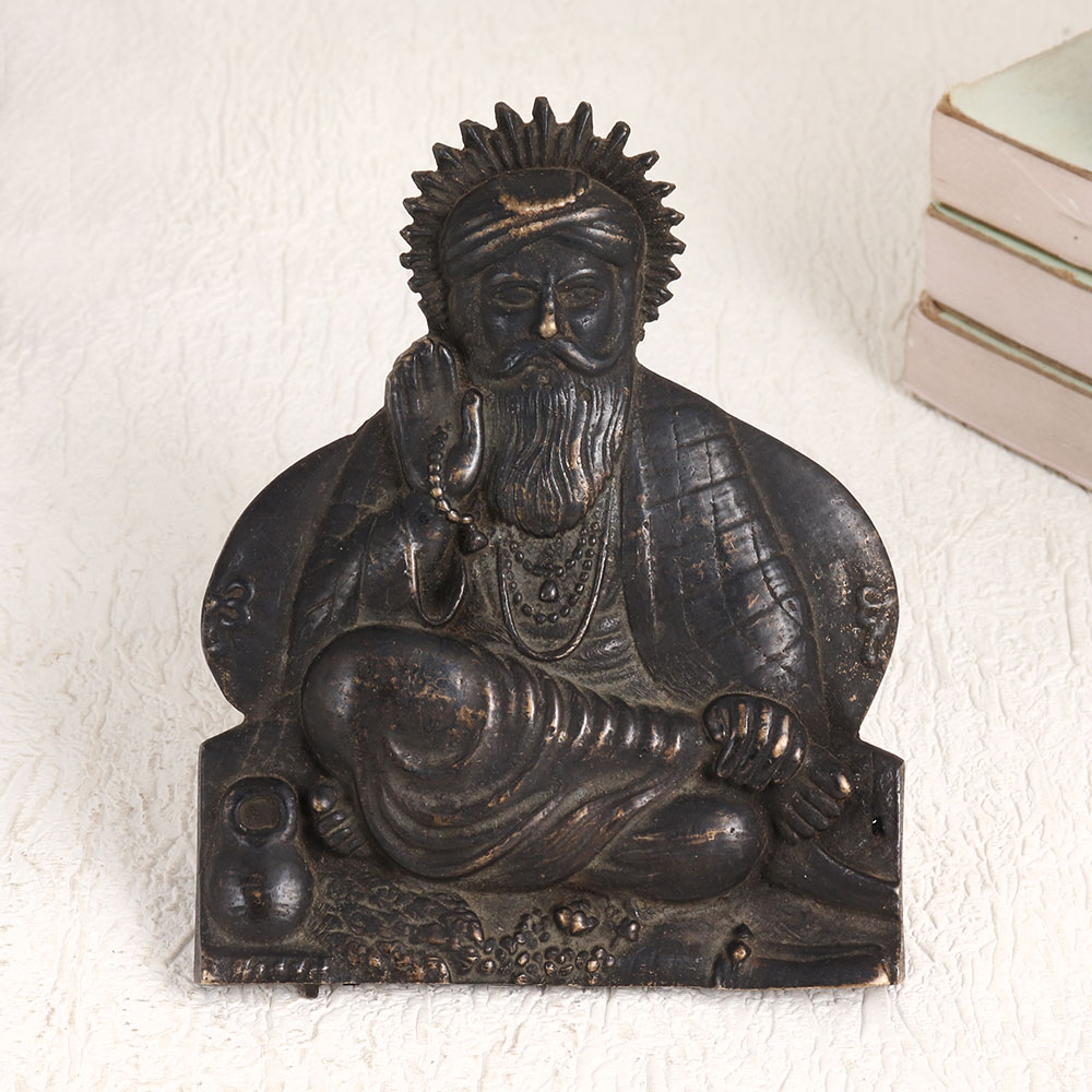 Enhance your interior decor with a touch of divine elegance by adding this exquisite Brass Holy Plate of Guru Nanak to your collection. Crafted by highly skilled Indian artisans, this antique dark finish plate exudes a timeless aura of spirituality and craftsmanship. Made from high-quality brass, this holy plate is a testament to the rich traditions of Indian metalwork. Its intricate detailing and exquisite design reflect the reverence and devotion associated with Guru Nanak, making it perfect for both worship and decoration. Whether adorning your home, office, restaurant, hotel, cafe, or shop, this versatile piece seamlessly blends with any setting, creating an ambiance of serenity and grace. Place it on your altar, hang it on your wall, or display it at an exhibition to showcase its beauty and cultural significance. This brass holy plate also makes for a thoughtful and meaningful gift for your family, friends or relatives on special, festive, or auspicious occasions. Add this masterpiece to your vintage collection and let the spirituality and artistry of Guru Nanak's teachings grace your surroundings.
