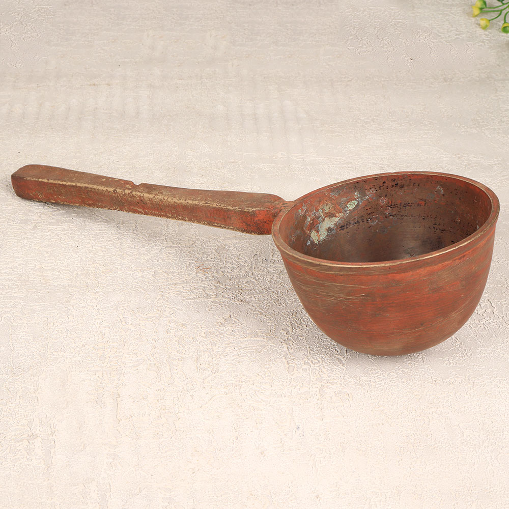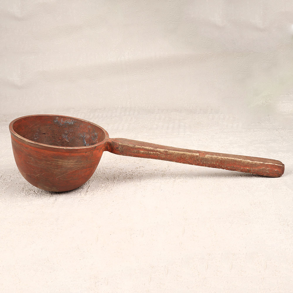 Buy a Vintage Brass Holy Spoon online that is a timeless piece crafted for havan and rituals by skilled Indian artisans in the revered South Indian Art tradition. This sacred implement boasts a resplendent antique brown finish, lending an air of mystique and authenticity to any space. Handmade with meticulous precision using high-quality brass, each spoon tells a story of craftsmanship passed down through generations. Versatile in its application, the Vintage Brass Holy Spoon transcends its ceremonial roots and serves as a captivating decorative element. Whether adorning your home, office, restaurant, hotel, or cafe, this piece seamlessly blends spirituality with aesthetics. Its unique charm makes it a valuable addition to any vintage collection, embodying the rich cultural heritage of India. Beyond its decorative allure, this holy spoon serves as a thoughtful and meaningful gift for your family, friends or relatives during special, festive, or auspicious occasions. Enveloped in tradition and adorned with timeless elegance, this handmade brass creation becomes a cherished token, symbolizing blessings and cultural heritage. Embrace the essence of spirituality and artistry with the Vintage Brass Holy Spoon that is a testament to India's rich artistic legacy.