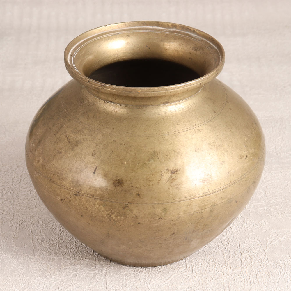 Buy a vintage brass holy water pot online and get a hassle free delivery right at your doorstep. Handcrafted with utmost precision by talented artisans hailing from the enchanting region of Rajasthan, India, this pot showcases the rich heritage of their craftsmanship. Its antique brown finish adds a touch of rustic elegance, giving it an aura of authenticity. Made from high-quality brass, this pot exudes durability and a sense of timelessness that is hard to come by in modern mass-produced items. This versatile piece can find a place in your home, office, hotel, cafe, shop, or restaurant's prayer room, infusing your environment with an air of spiritual serenity. Use it during prayers, or repurpose it as a charming small flower pot, bringing the beauty of nature indoors. Not only does this holy water pot spread positive energy throughout your home, but it can also make a unique addition to your vintage collection. Display it proudly at exhibitions or surprise your family, friends or relatives with this exceptional piece on special, festive, or auspicious occasions. It's a thoughtful gift that embodies artistry, tradition, and spirituality.