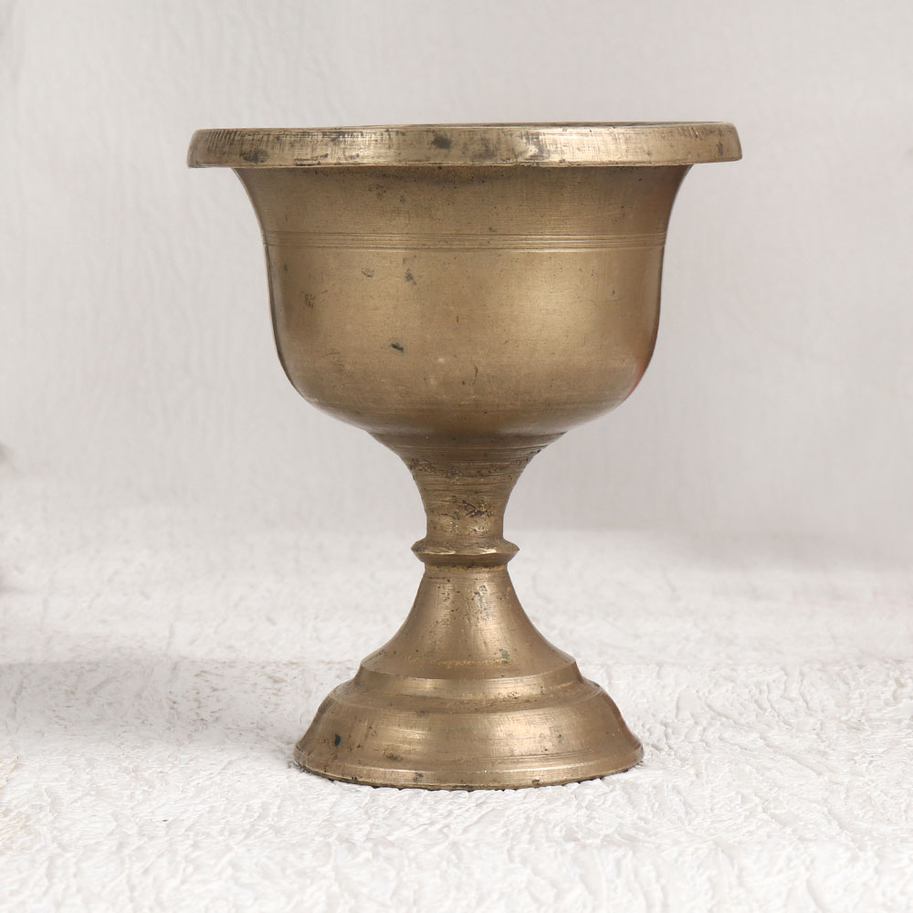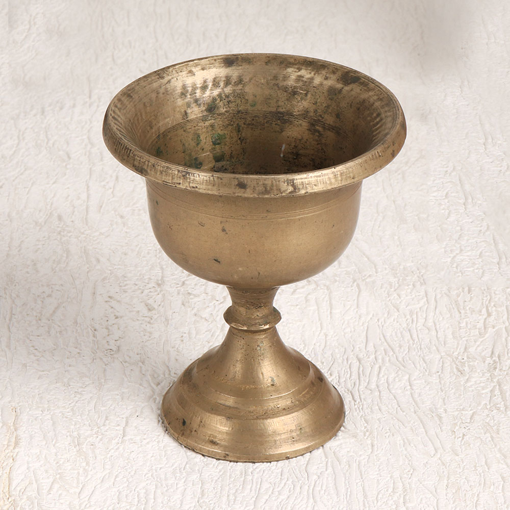 Buy a Vintage Brass Kumkum Cup online from our website and get a hassle free delivery at your doorstep. Meticulously crafted by highly skilled Indian artisans in the age-old tradition of South Indian Art, this exquisite piece showcases their dedication to craftsmanship. Its antique brown finish adds a touch of rustic charm, making it a versatile addition to any setting. Made from high-quality brass, this kumkum cup serves a dual purpose. Not only does it make for a captivating decorative item in your home, office, restaurant, hotel, cafe, or shop, but it also holds significance in religious practices. During prayer rituals, it provides a sacred vessel to store kumkum tilak, enhancing the spiritual ambiance. This brass kumkum cup is a treasure for vintage collectors and can be a captivating addition to your collection or a standout piece at exhibitions. It's also a thoughtful gift choice for your family, friends or relatives on special, festive, or auspicious occasions, symbolizing tradition, artistry, and a connection to Indian heritage. Embrace the rich history and craftsmanship embodied in this vintage gem and let it grace your life with its timeless beauty.