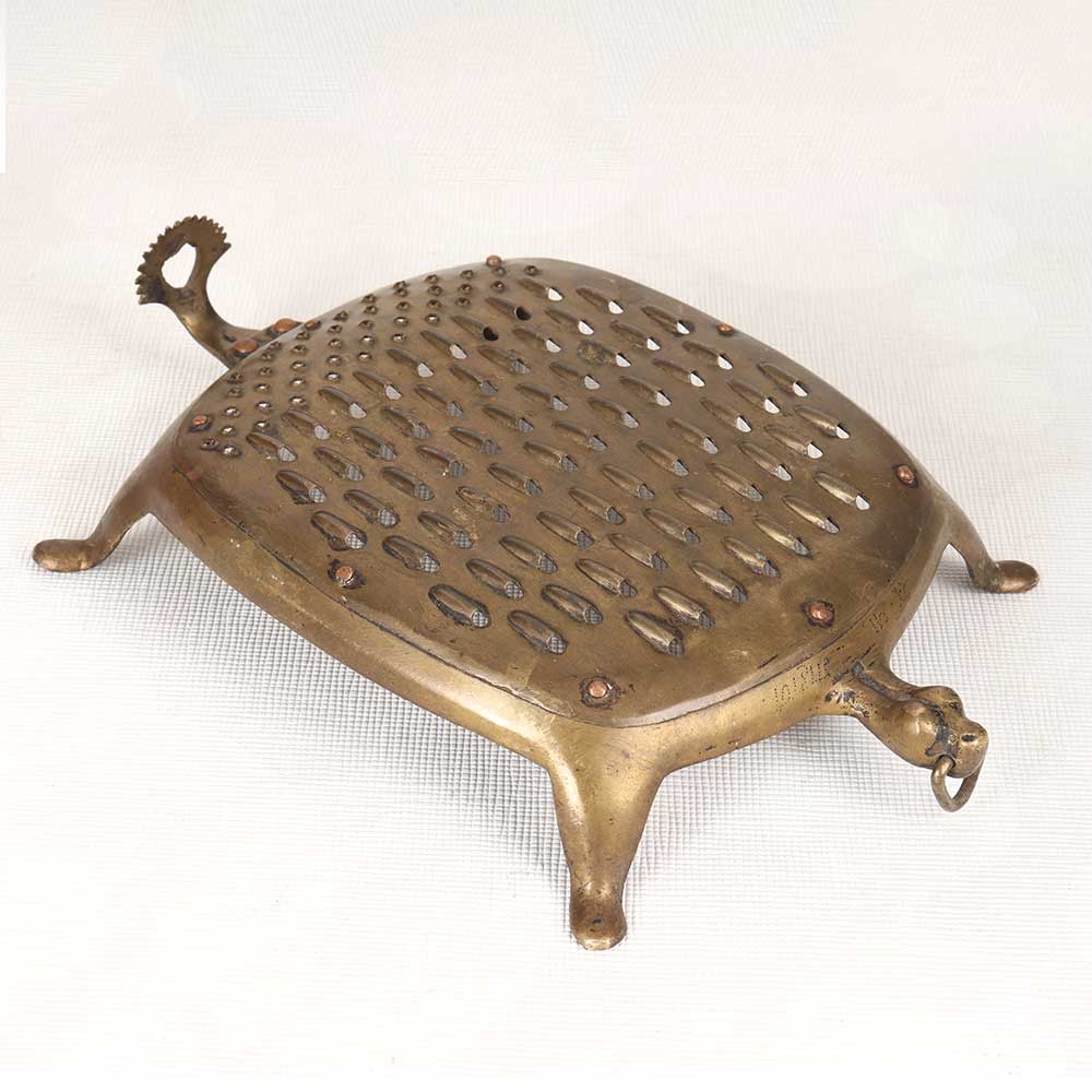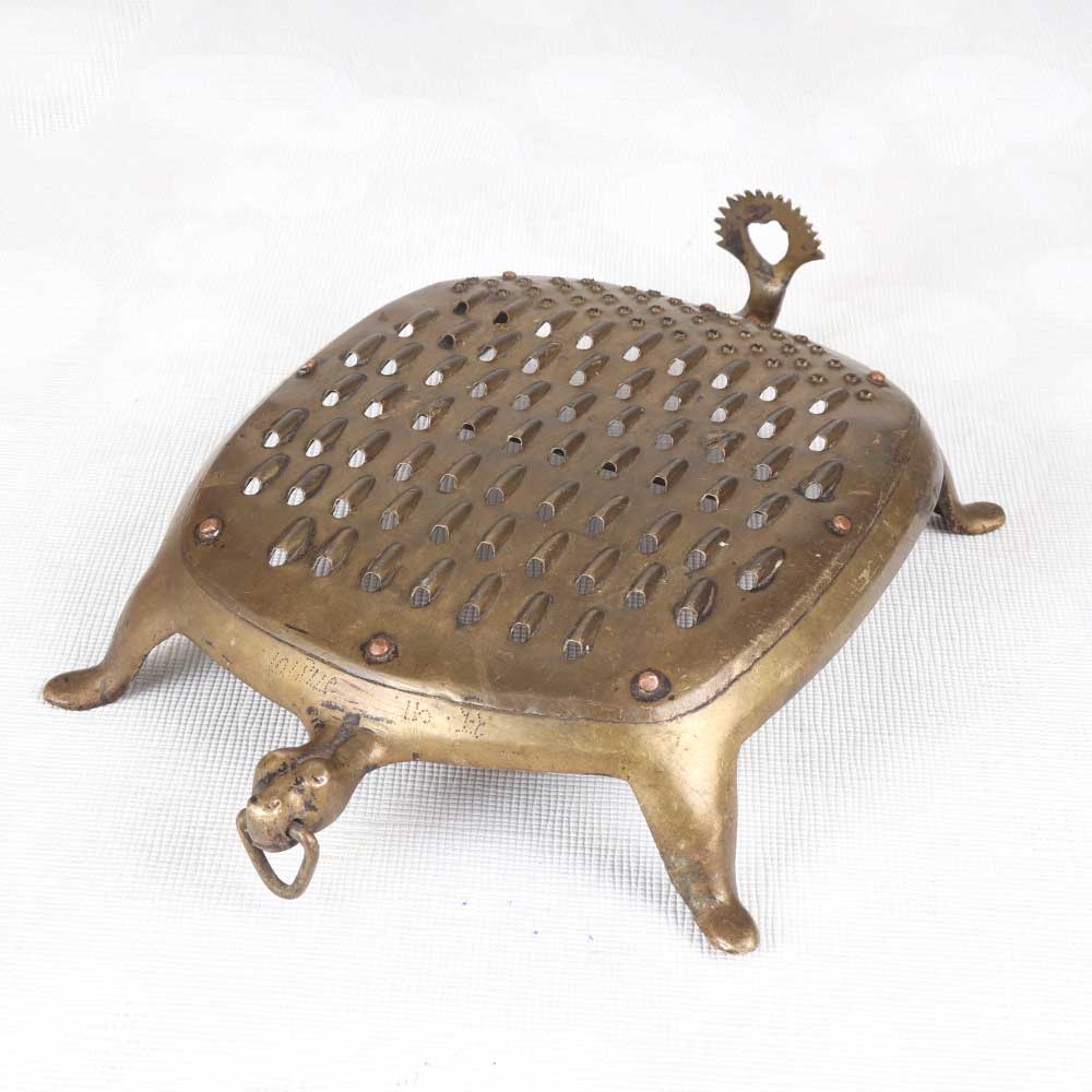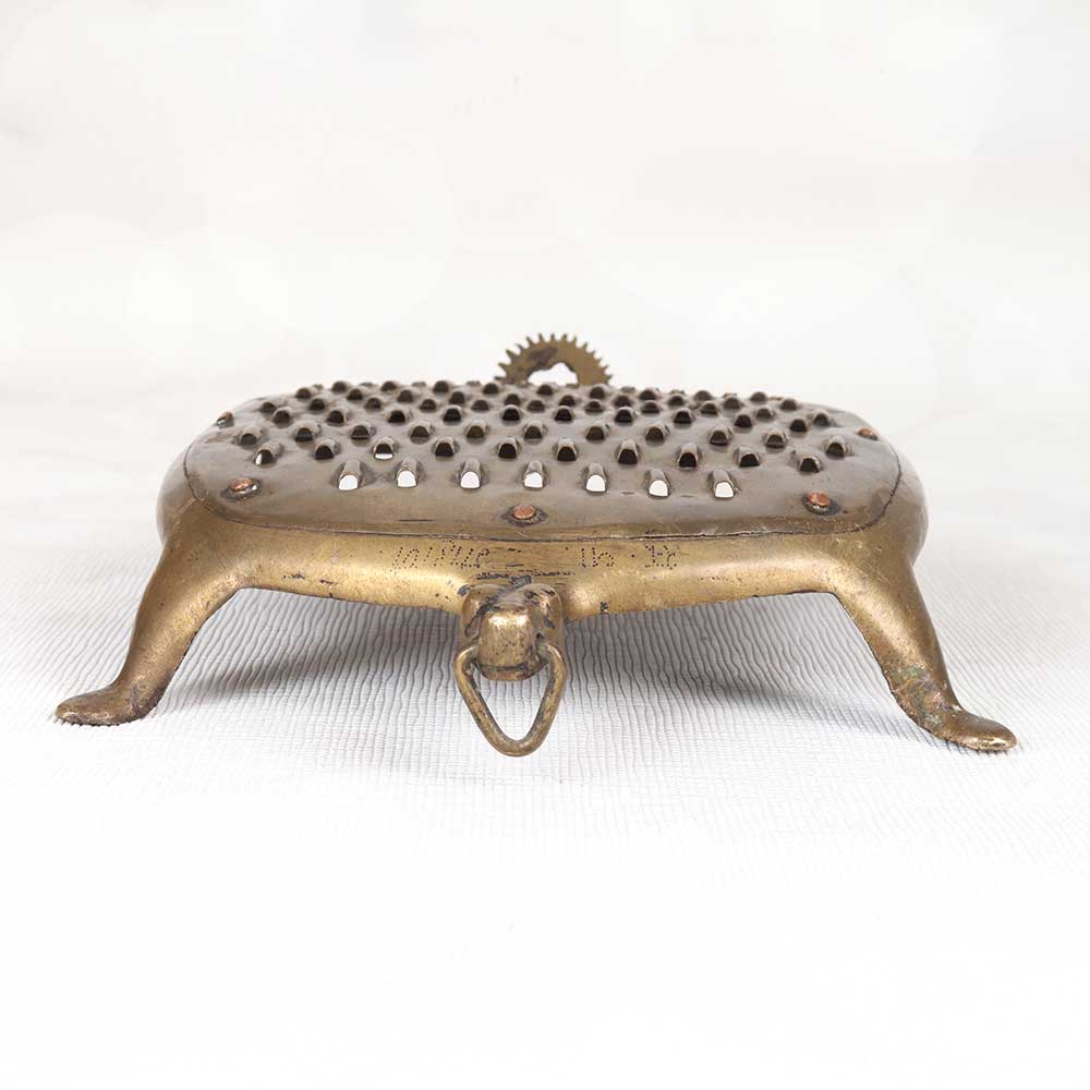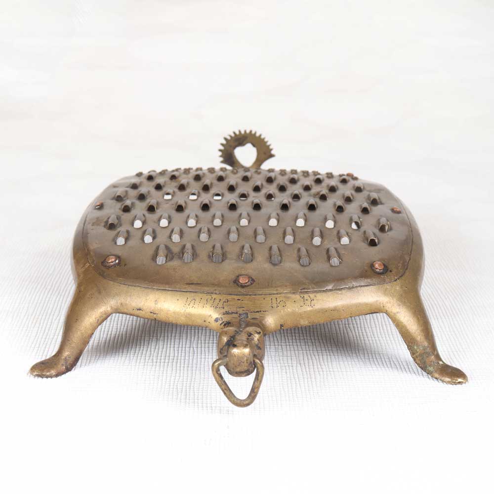 Add a touch of vintage charm to your kitchen with this antique brass vegetable grater. Gently used over time, the brass displays a lovely aged patina that adds character and antique appeal. This antique brass grater brings a sense of nostalgia and old-world charm to any space. Display it in your kitchen or dining area as a decorative element that nods to vintage style. The aged look of the brass paired with the classic grating surface gives this grater loads of antique character. For decorative use only, this vintage brass grater makes a wonderful decorative accent. Place it on display to create an old-fashioned atmosphere and highlight your love for antique kitchenalia. The aged patina makes each one a unique decorative find.