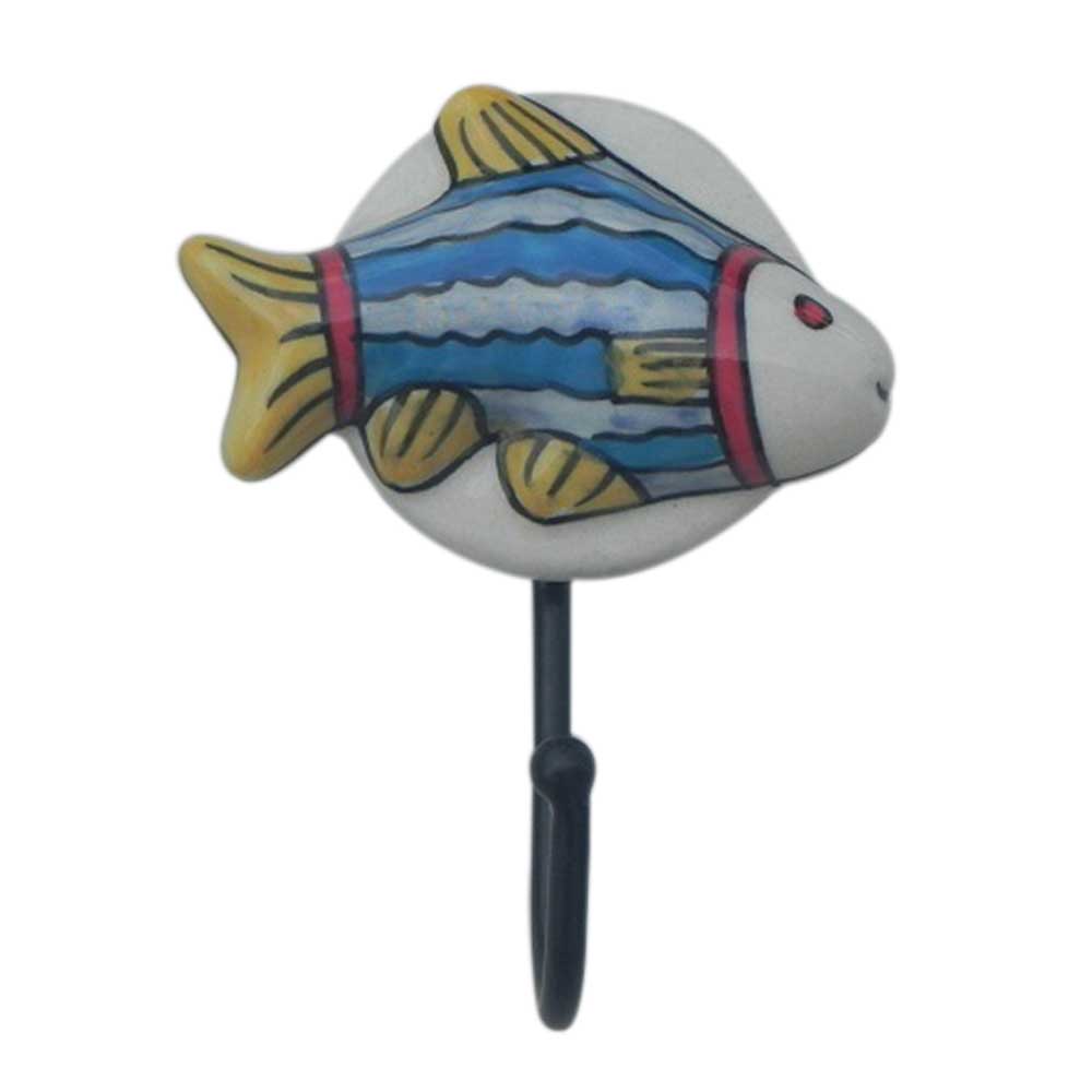 Fish Ceramic Hook. When Put on Wall or Cabinet It is An Art in Itself. This Black Powder Coated Iron Hook is Strong Enough to Hold Your Cloths, Keys, Tea Cups, Coffee Mugs, Hand Towels Etc. It Will Give A Colorful and Artistic Look to Your Kid's Room.