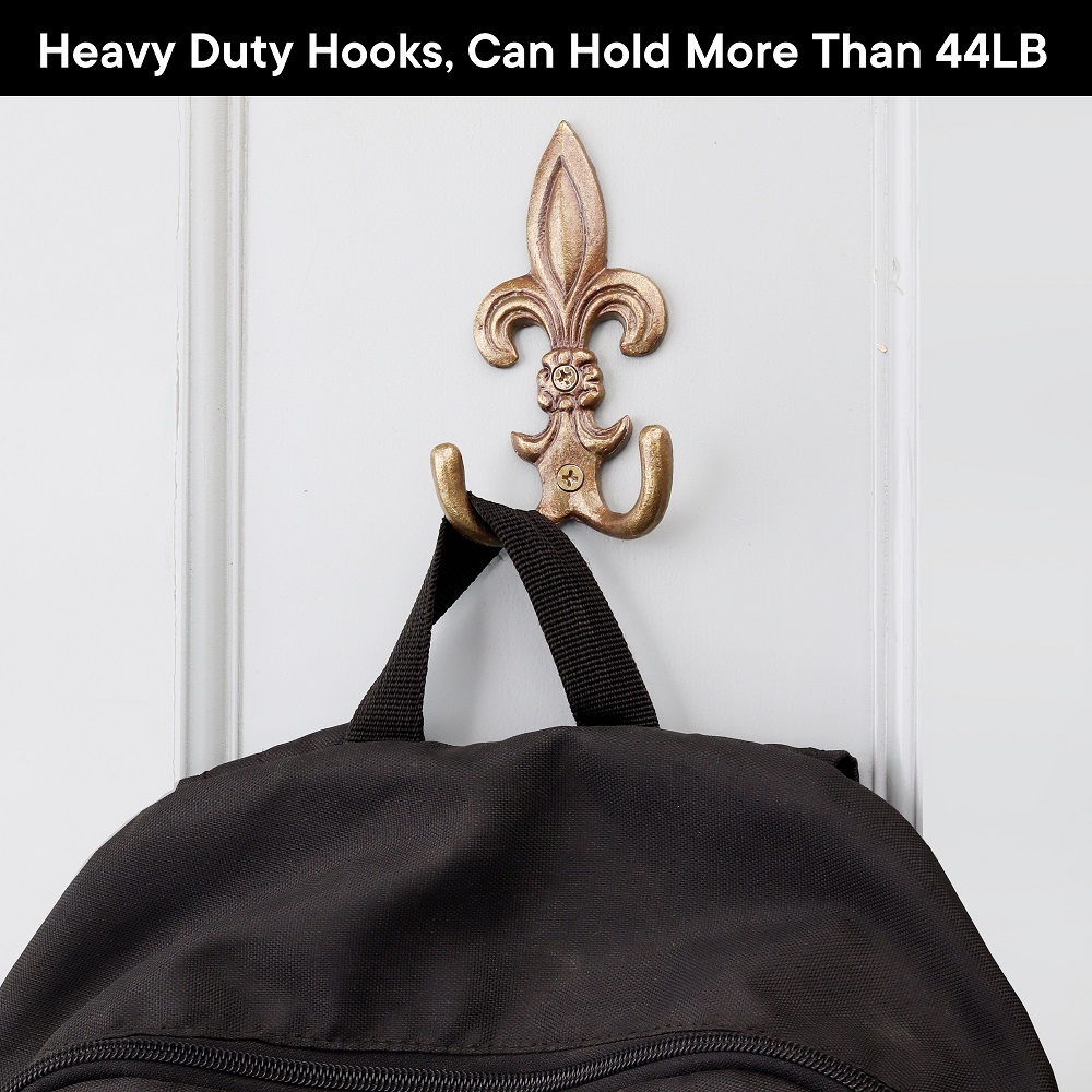 Whether placed in the entryway, bathroom, kitchen, or bedroom, the Fleur De Lis Iron Hooks are adaptable enough to enhance any room. Their decorative design not only elevates the look of your space but also provides practical storage solutions.