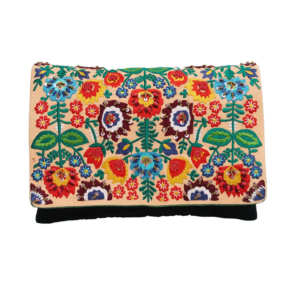 Introducing our beautiful small sling bag for women, handcrafted by skilled craftsmen with the finest quality cotton and adorned with exquisite beads. This stunning bag features intricate blue and red flower engravings on a light pink base, creating a striking contrast that is sure to turn heads. Perfect for use as an office bag, a bag for going out or traveling, this versatile sling bag is sure to become your go-to accessory. The convenient sling design allows you to wear it comfortably across your body, leaving your hands free for other tasks. Not only is this bag a stylish addition to any outfit, it also makes a thoughtful gift for your family, friends, or relatives. Show them how much you care with a gift that is both beautiful and practical. So if you're looking for bags for women that are both functional and fashionable, look no further than our stunning handcrafted sling bag.