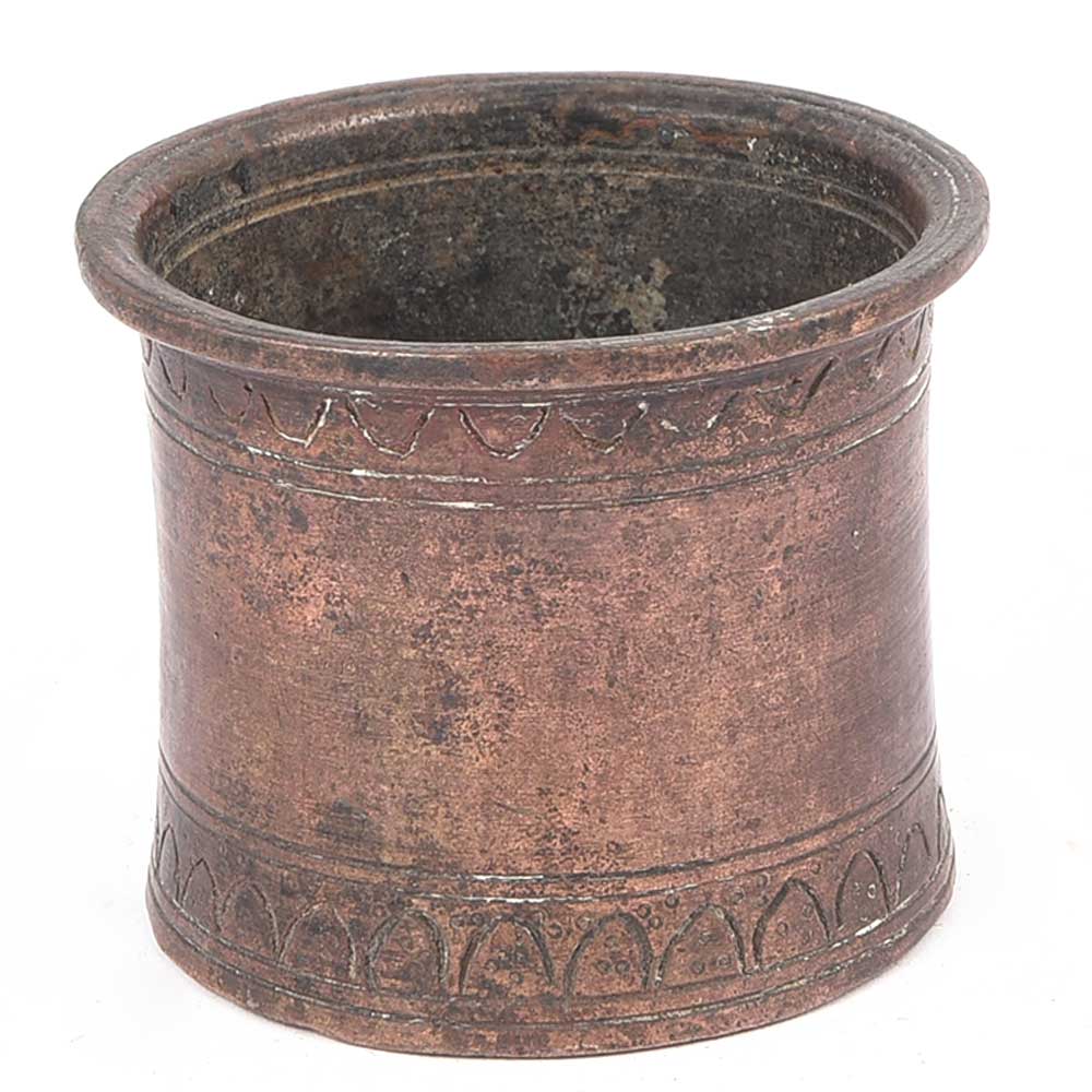 An Old Indian Brass Copper Hand Engraved Hindu Ganga Jal Holy Water Panachmrut Pot. It Was Used in Hindu Temples and Hindu People in Worship.