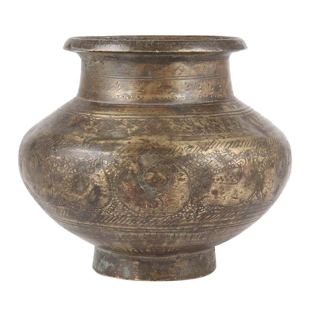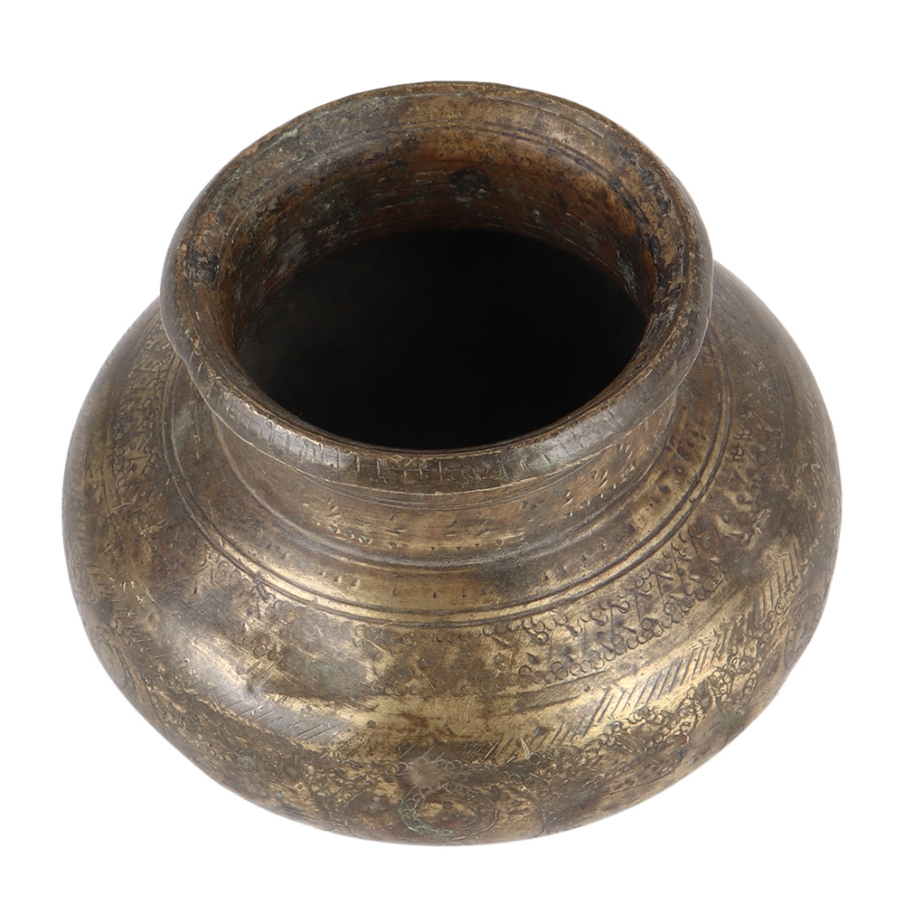 This old brass lota or water jug, traditionally fashioned and built according to Indian culture, is not only used for worship but is also a component of our kitchen's traditional ornamentation. It is ideal as a Diwali or wedding present.