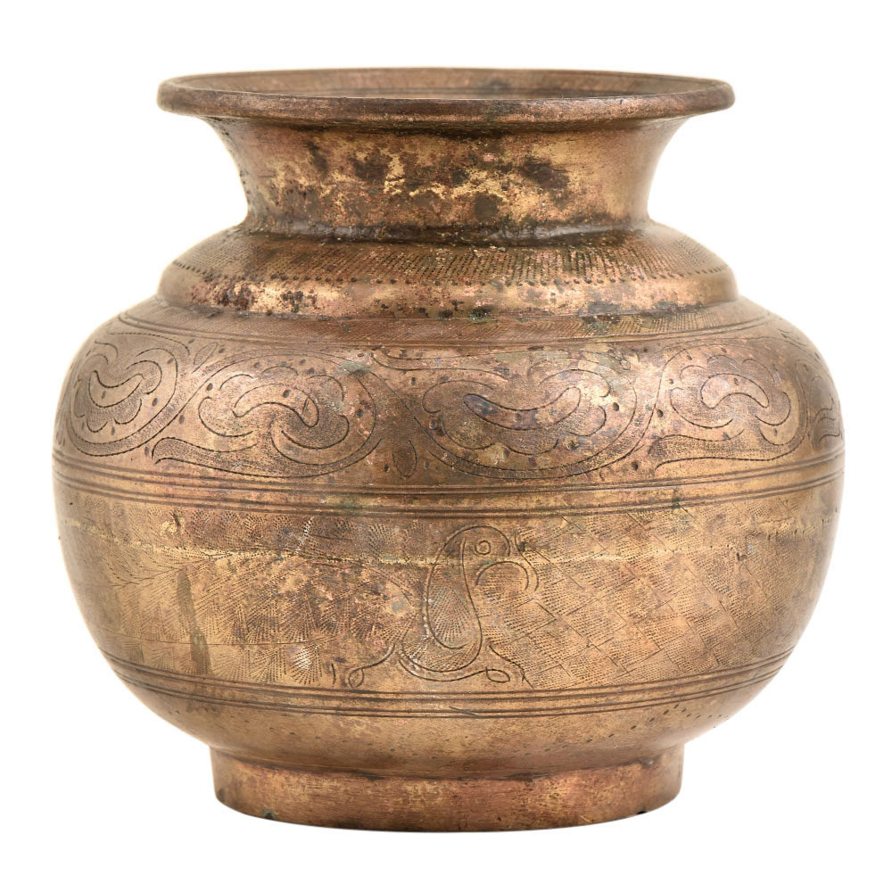 Water Storage Pot made in best quality metal by expert craftsmen of India has a lovely floral border just below the neck and the base of the pot. The pot carries the distinct design of the time. This exquisite piece is a treat for collectors and makes for a wonderful decor accent