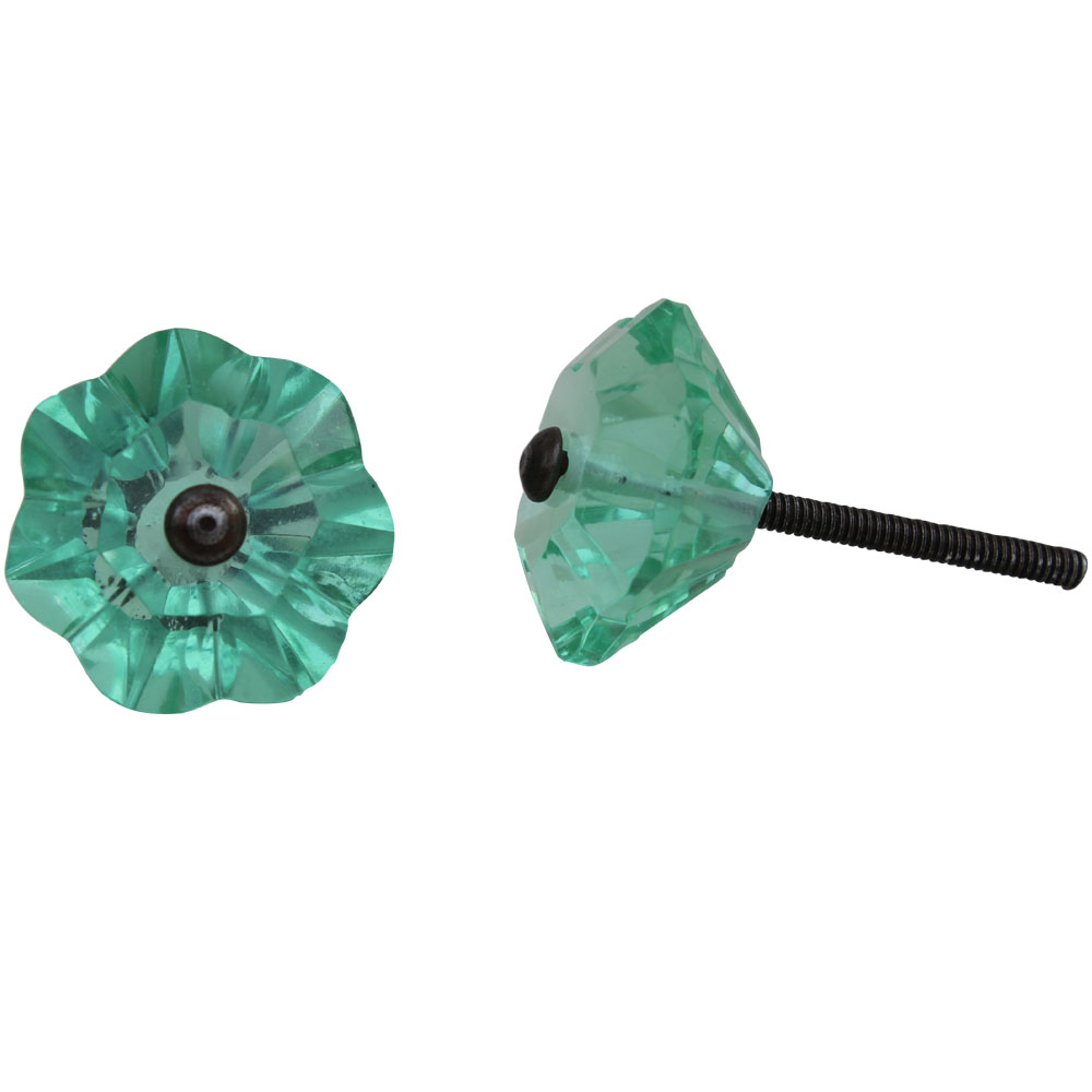 Floral Mint Color Glass Knobs. Ideal for Drawer, Dresser, Cabinet, Wardrobe, Cupboard and Almirah.