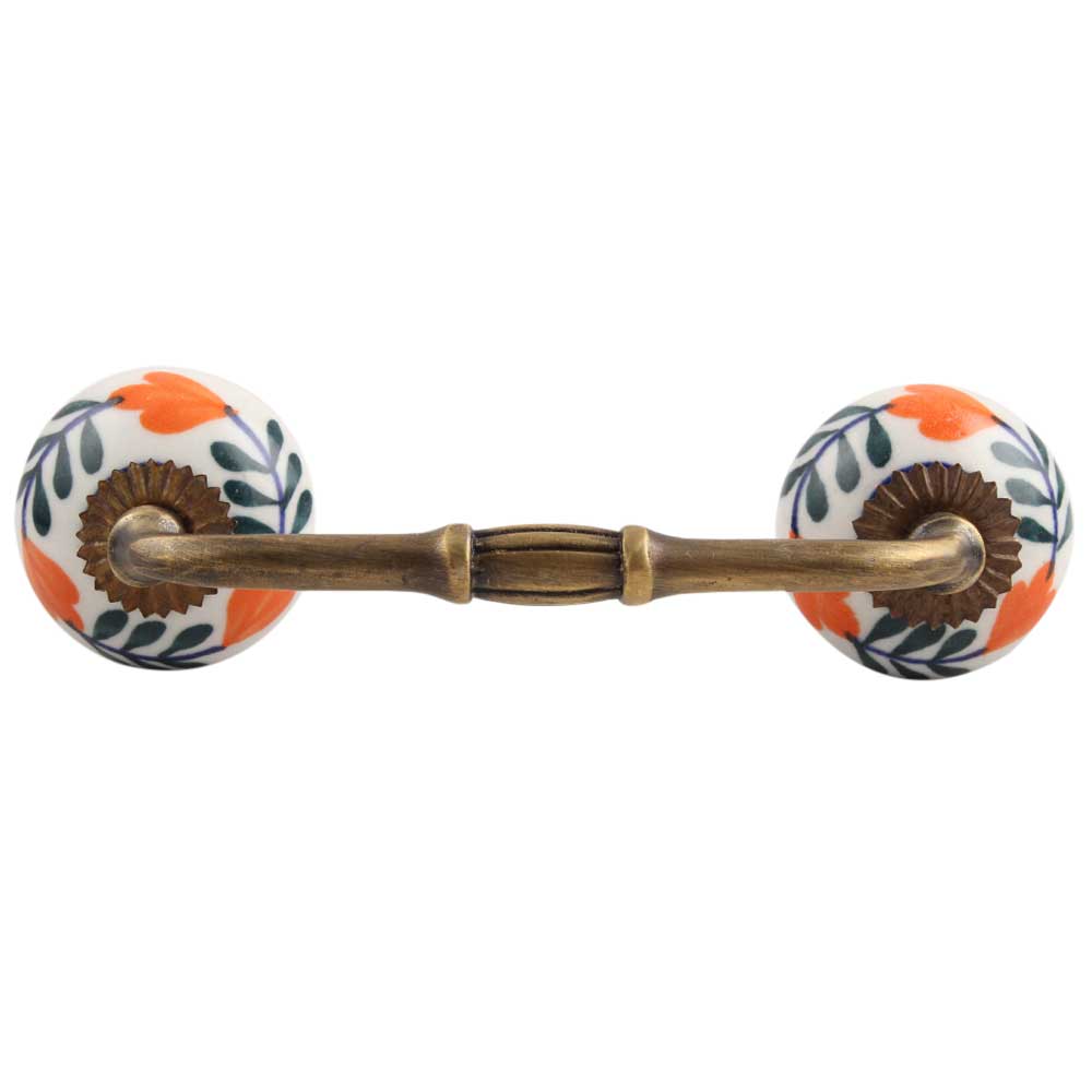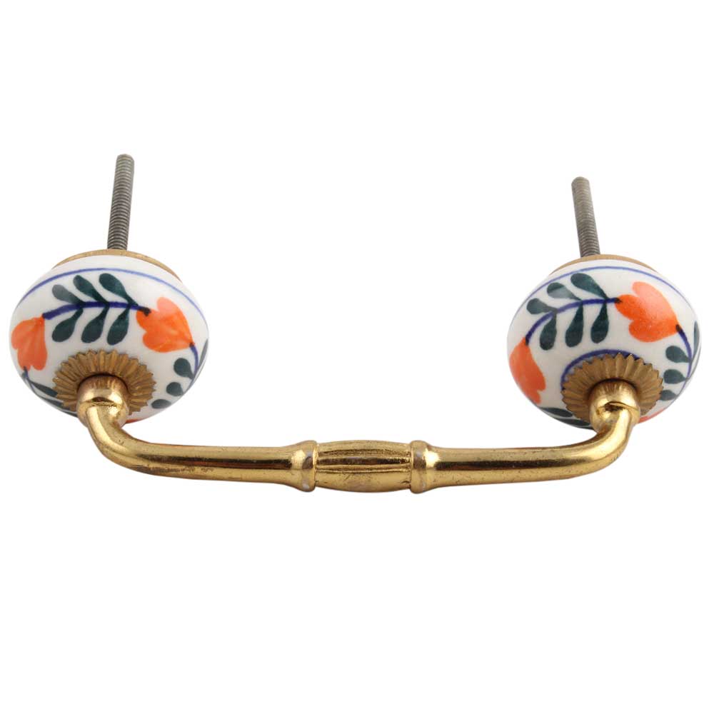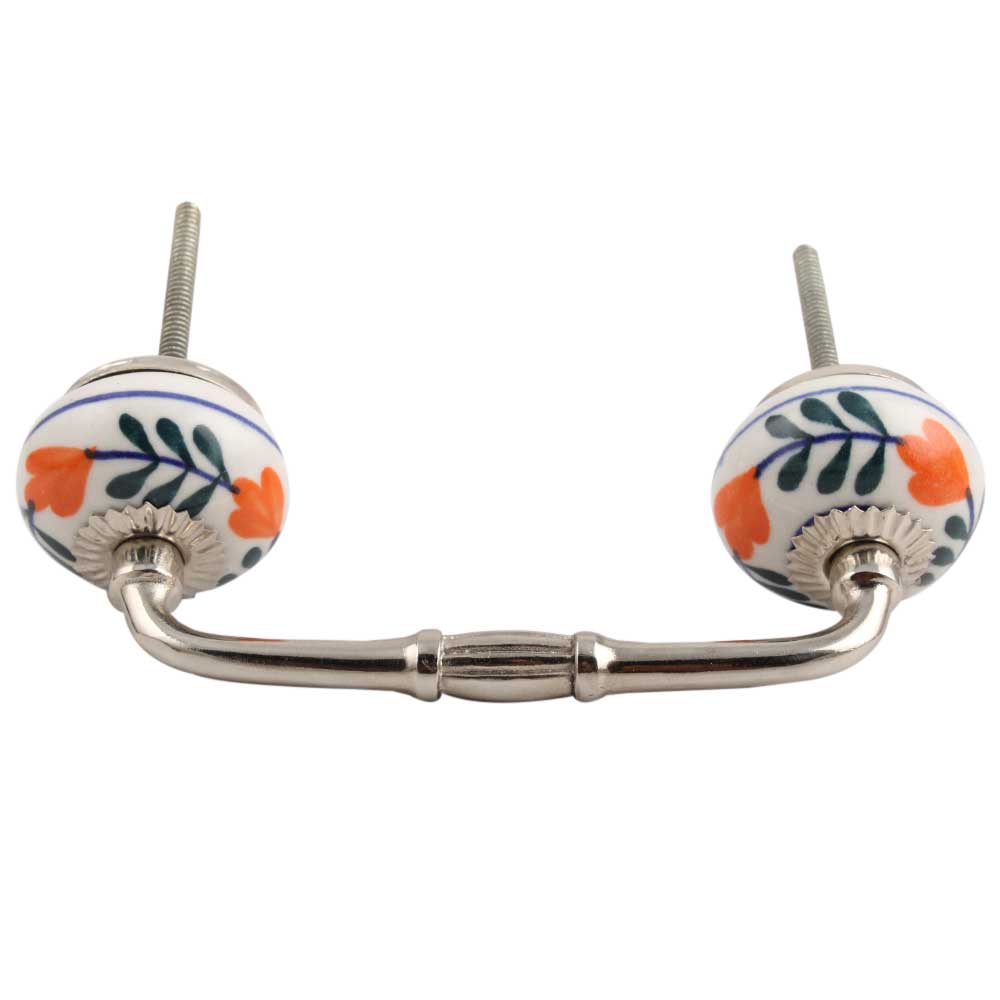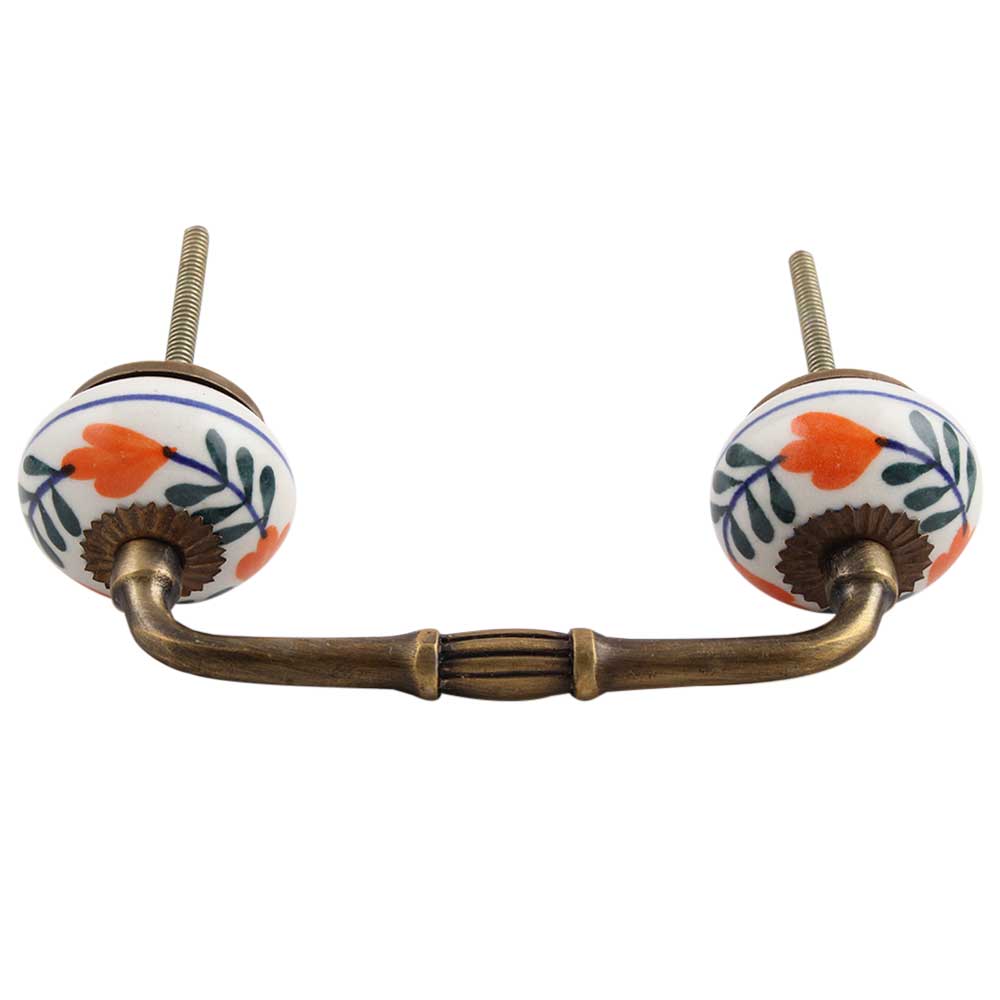 forest Green Leaf Ceramic Bridge Handle. Ideal for Drawer, Dresser, Cabinet, Wardrobe, Cupboard and Almirah.