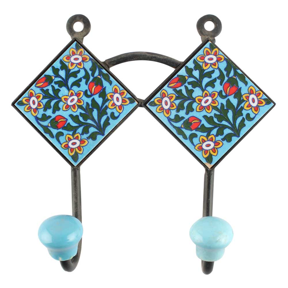Forest Green Leaf Ceramic Tile Hook. When Put on Wall or Cabinet It is An Art in Itself. The Metal Part of this Hook is Black Powder Coated.
