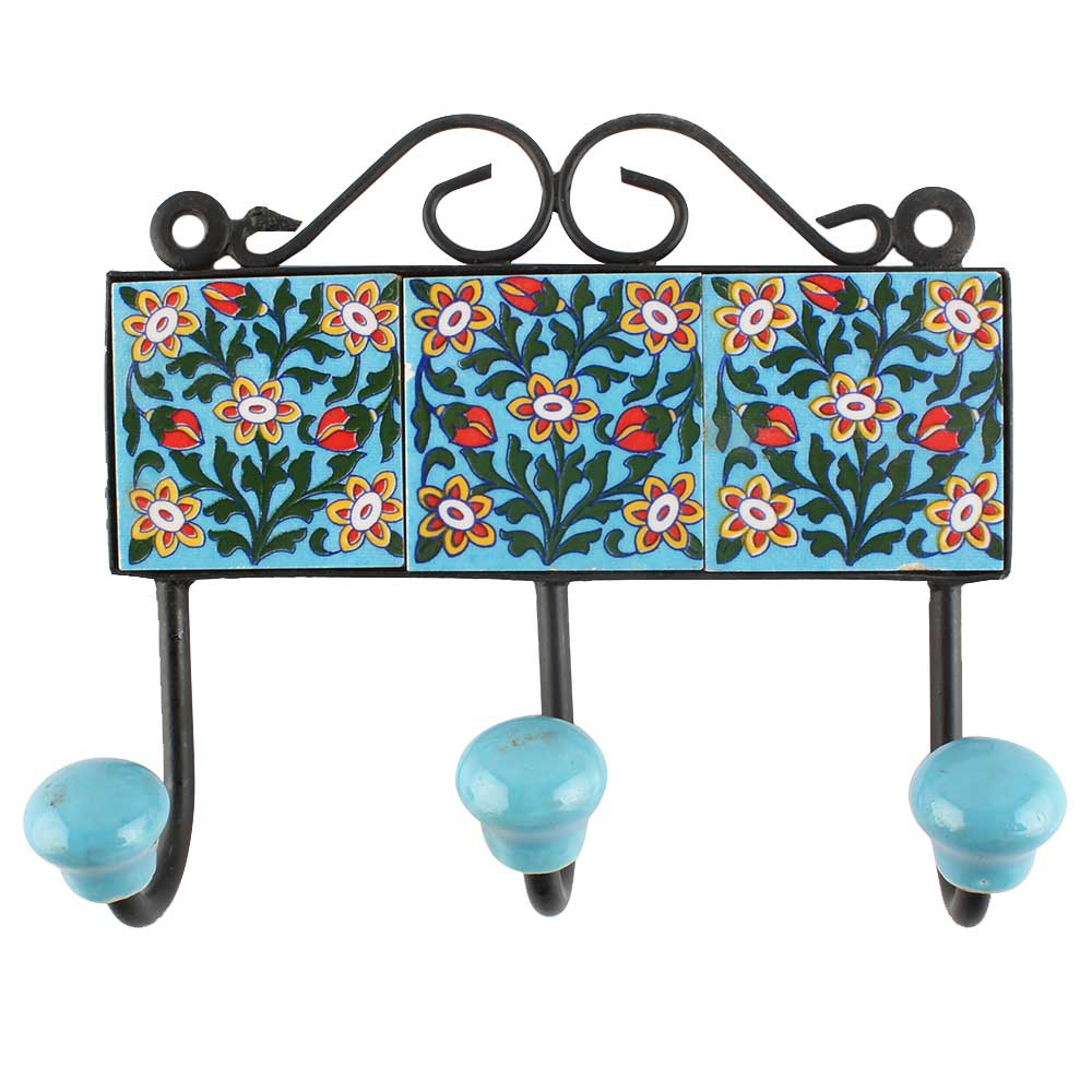 Forest Green Leaf Ceramic Tile Hook. When Put on Wall or Cabinet It is An Art in Itself. The Metal Part of this Hook is Black Powder Coated.