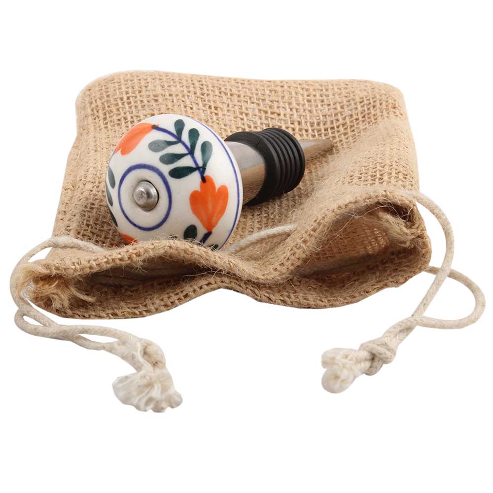 Forest Green Leaf Ceramic Wine Stopper.zinc alloy wine bottle stopper with attractive Jute Bag Packaging.