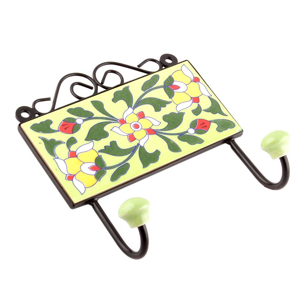 Forest Green Leaf Floral Tiles Hooks Online. When Put on Wall or Cabinet it is an Art in itself. The Metal Part of this Hook is Black Powder Coated.