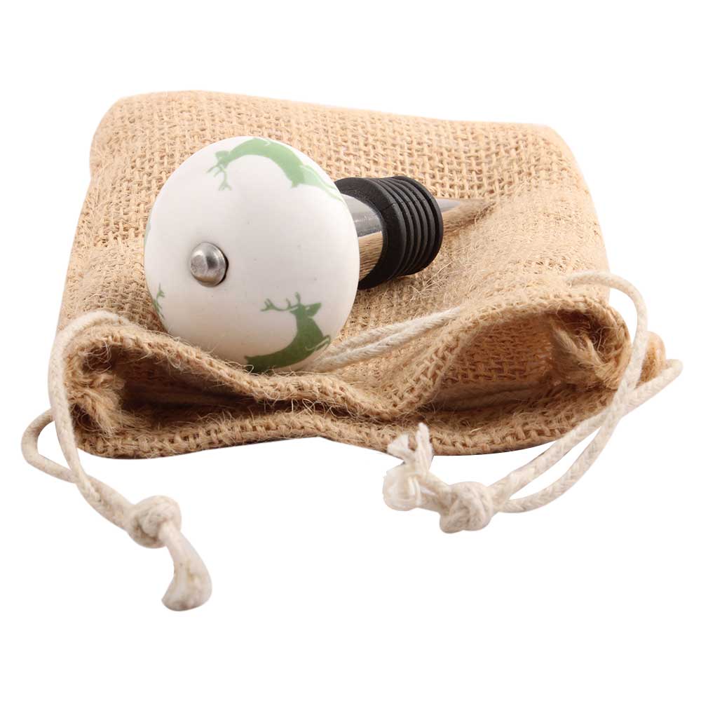 Forest Green Runing Rein Deer Pattern Ceramic Wine Stopper