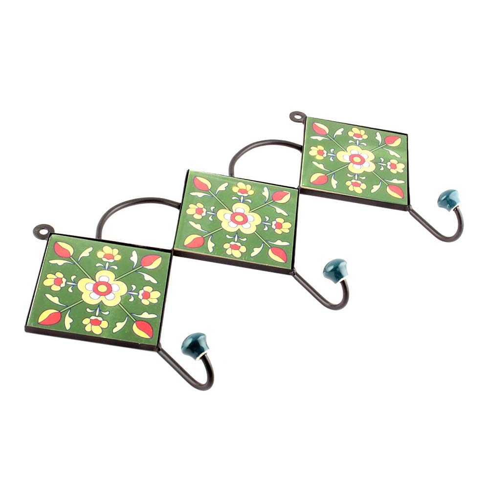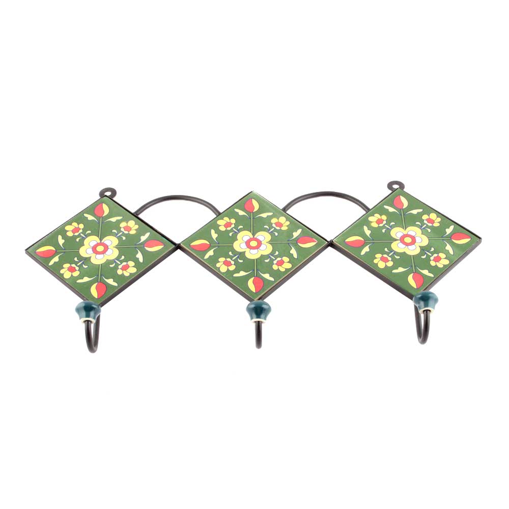 Forest Green Triangle Floral Ceramic Tiles Hooks